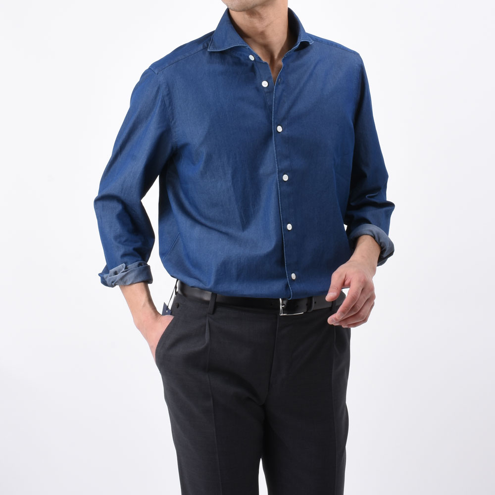 ・狭めな肩幅が特徴的な「Finamore (フィナモレ)」のシャツは、その肩幅からは想像も出来ないほど動き易く、フィット感に長けています。その秘密はいせ込み+前ふりの袖付け。フィット感はありながら、身体にまったくストレスを与えず、極上の着心地です。