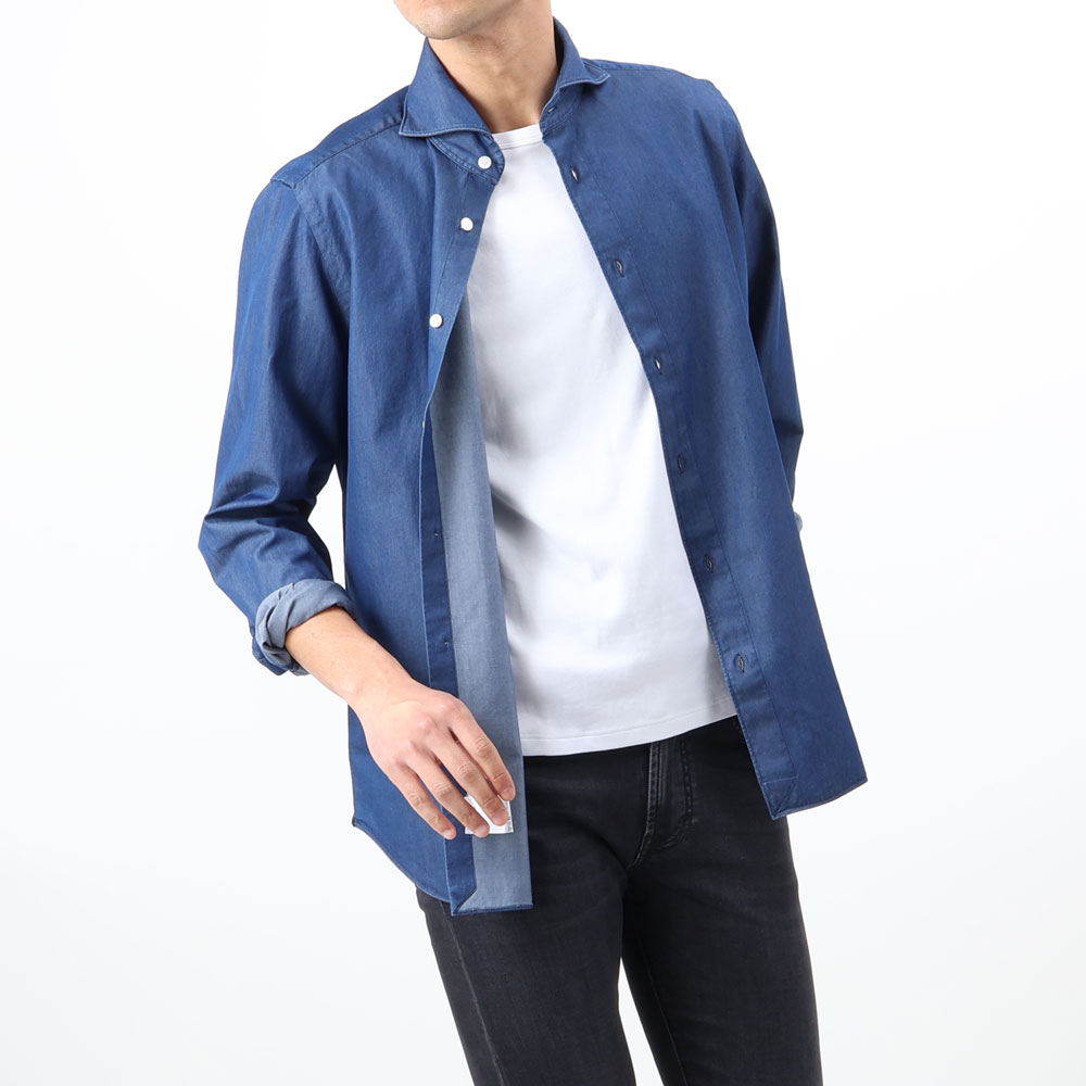 ・「Finamore (フィナモレ)」の端正な作りのドレスシャツは本国イタリアでも高評価を受けています。ご紹介するのはそのドレスで培ったテクニックを注ぎ込み、3箇所(袖付け・ボタン付け・ガゼット)をハンドで仕上げ、洗いを掛けたカジュアルシャツラインです。