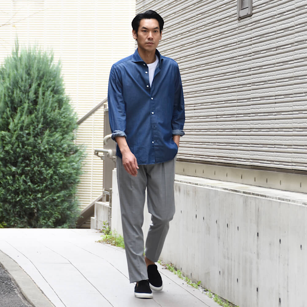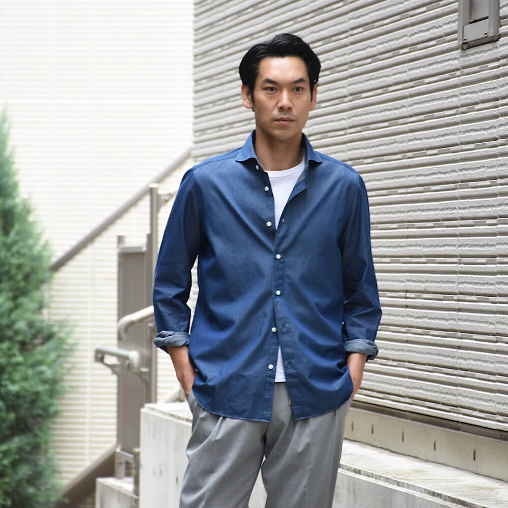 ・生地は適度な厚みのブルーデニムでオールシーズン着用が可能。製品洗い加工により柔らかな風合いが生み出され、着込まなくても最初からこなれた雰囲気を醸します。全2色(インディゴ/ライトインディゴ)のラインナップ。