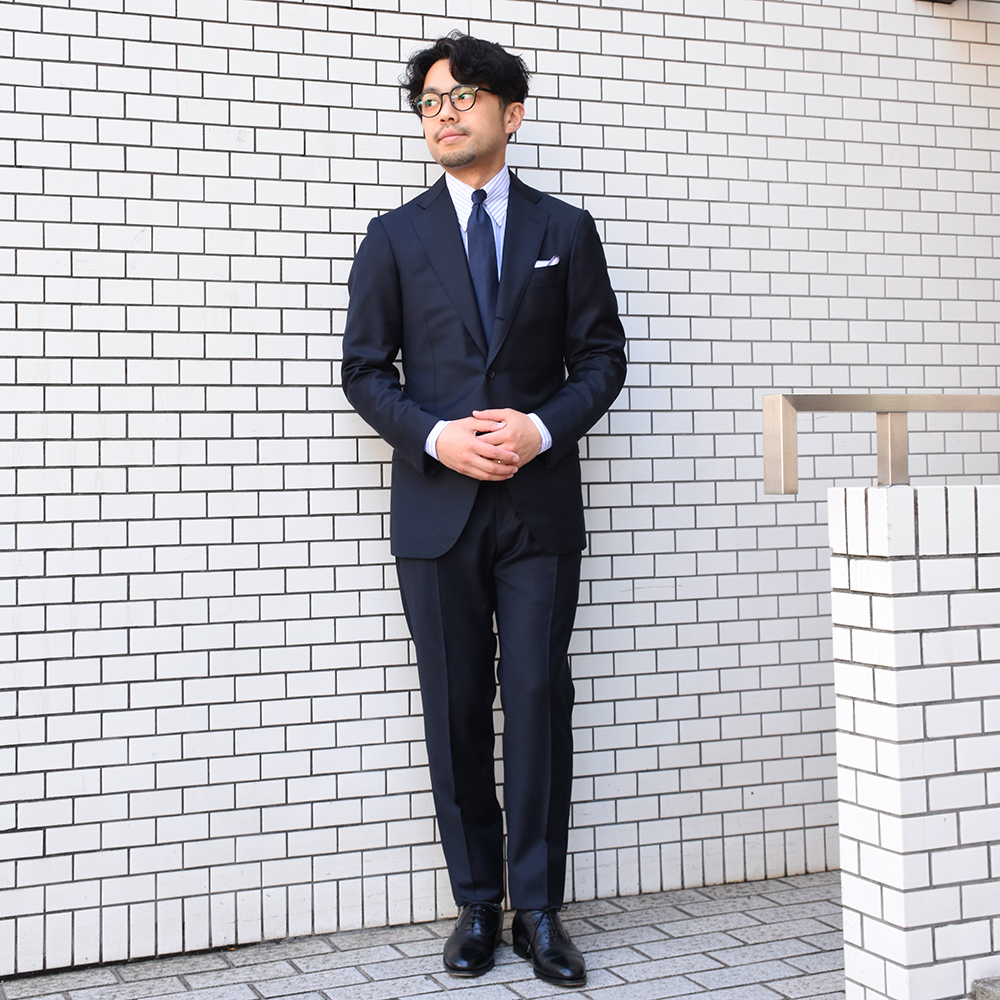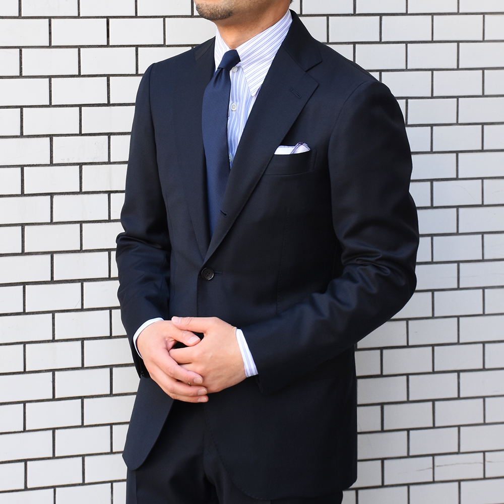 ・襟型は襟腰の高さ、襟の大きさや角度のバランスが良いレギュラーカラーがベースとなったタブカラー。B.R.SHOPのリクエストによりタブの位置が調整され、ネクタイの生地や芯地がしっかり目でも着けやすく、立体感が出るようになっています。ステッチ幅は3ミリです。
