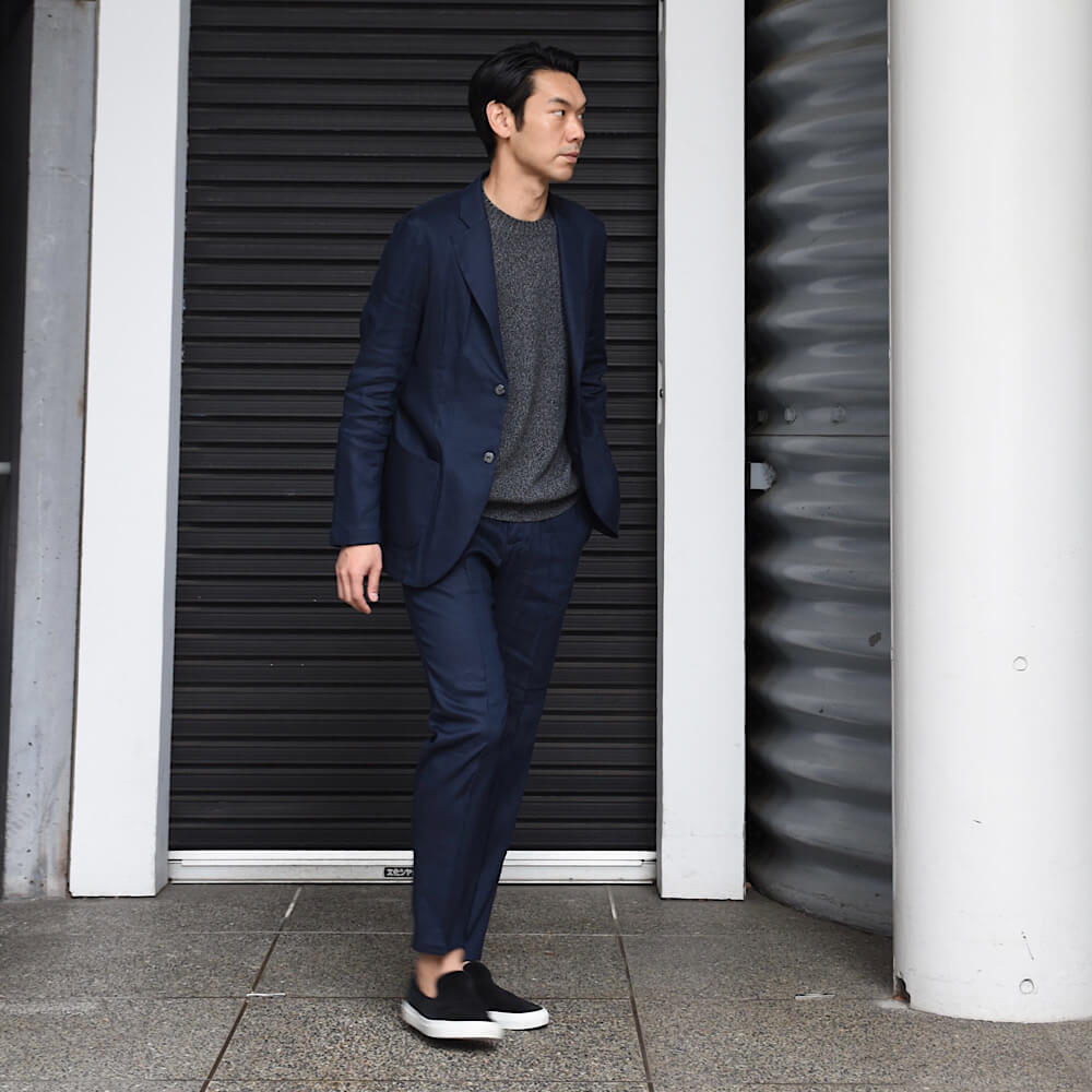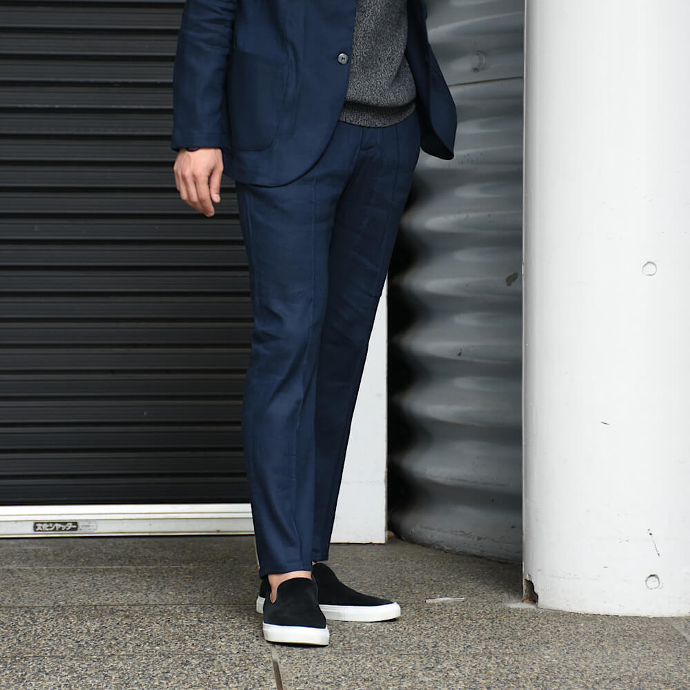 ・目付け200グラムと超軽量、そしてウォッシャブルという機能性を備えるリネン混生地を採用した、新モデルのトラウザーズ"MASACCIO/3G"とジャケット”STROZZI/L”をご紹介。
