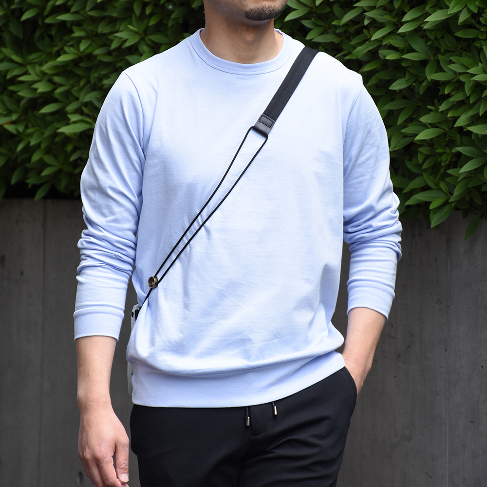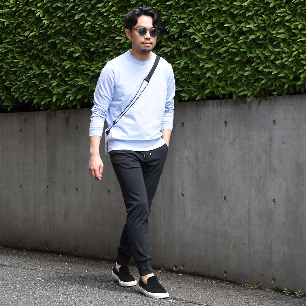 袖と裾がリブで締まるため、幅広い体型をカバーでき、一枚で着ていても寂しくなりません。透けにくい生地を採用している為気楽に着ることができます。サイズ44を着用しちょいユルなフィッティング。インナーとしてのフィット感を求めるならサイズ42、一枚でもインナーでもと汎用性を求めるならサイズ44を選びます。