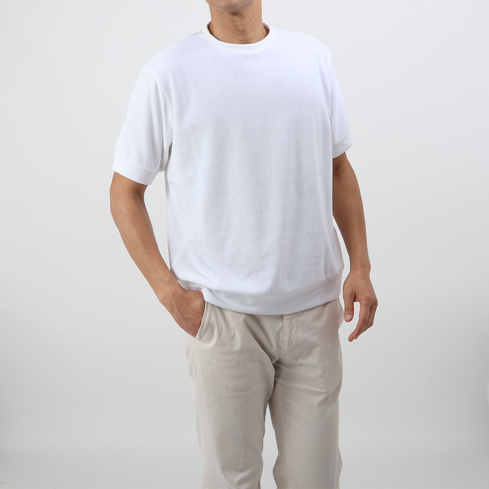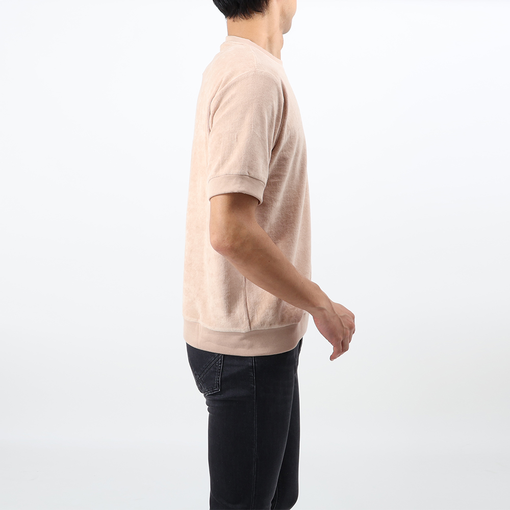 ・リラックス感ある"ちょいユル"シルエットでありながら、袖と裾にはリブ状のパーツ(ボディのパイル素材を裏使い)が付属。これによってシルエットにメリハリが生まれニットTのような品のある見え方にもなり、世代を問わず着られる"ちょいユルT"に。これが人気の理由です。