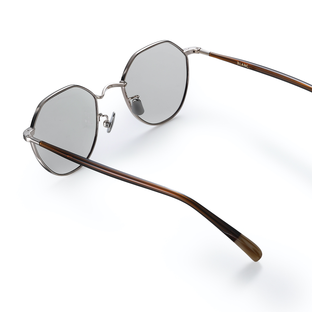 ・チタンフレームに「BLANC..(ブラン)」らしい透明感のある色合いのセル調テンプル(シルバー:グレー / ゴールド:ブラウン)が組み合わされており、軽快で知的な雰囲気が味わえます。