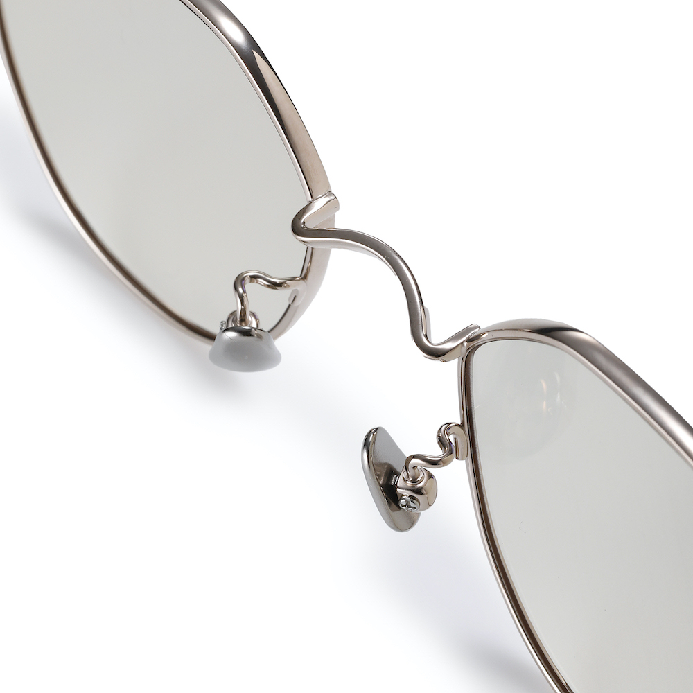 ・ほんの少しティアドロップ調に整えた玉型(レンズの形状)が特徴的。クラシックな雰囲気のあるレンズシェイプながら、セミフラットレンズの採用でスタイリッシュに映ります。