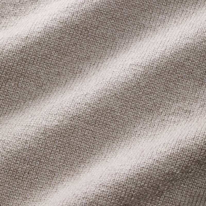 ・Kid Cashmereならではの軽く柔らかい糸を平編みにすることで、しっとり柔軟性に富んだ編み地に。秋口から春先まで着られる程よい厚みです。