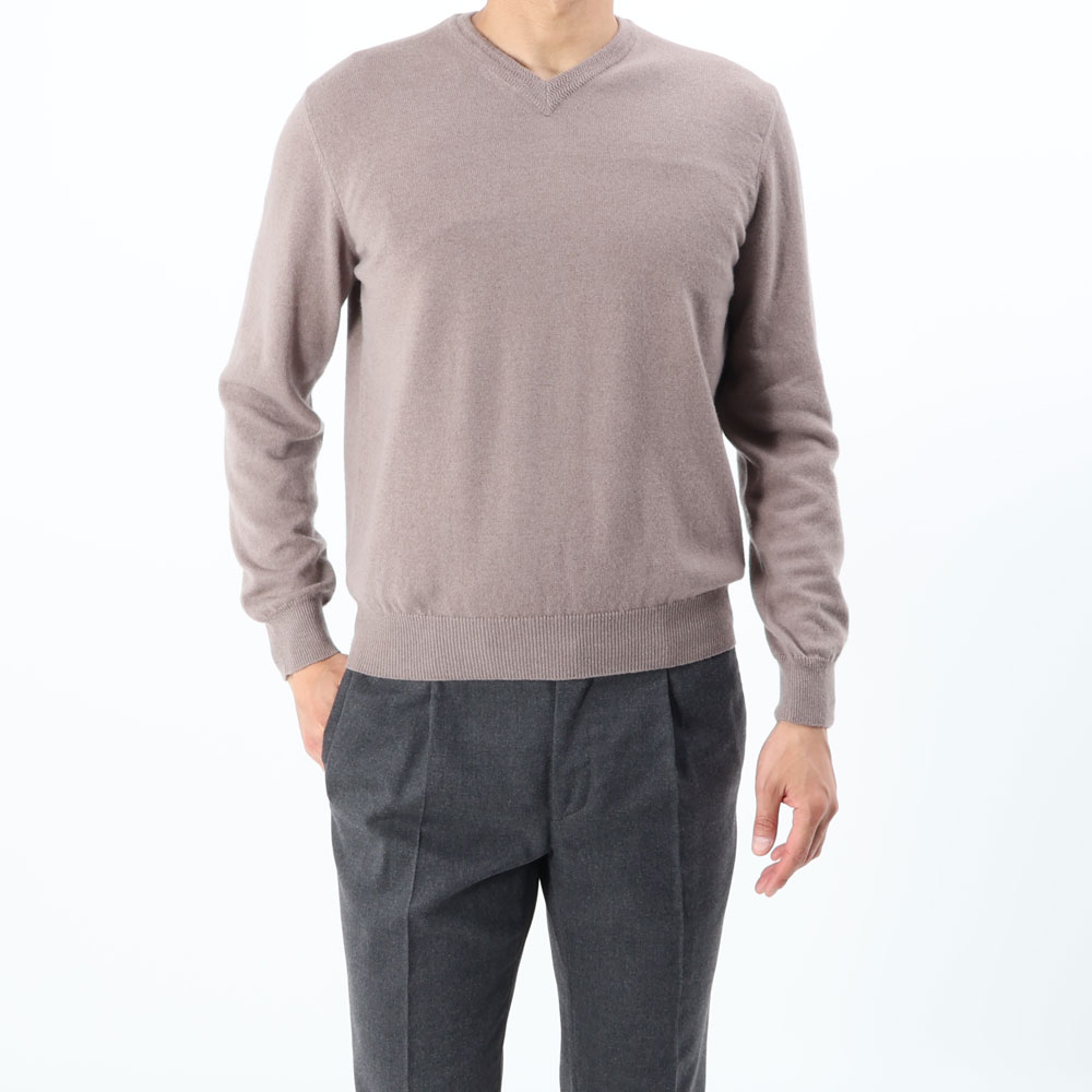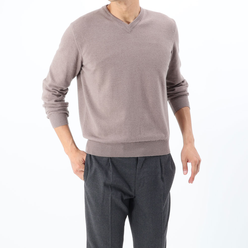 ・シルエットは上質素材を活かすべく極めてスタンダード。少しゆったりめに着用したい場合は、普段の1サイズアップもオススメです。同じ編み地でクルーネックもラインナップ。