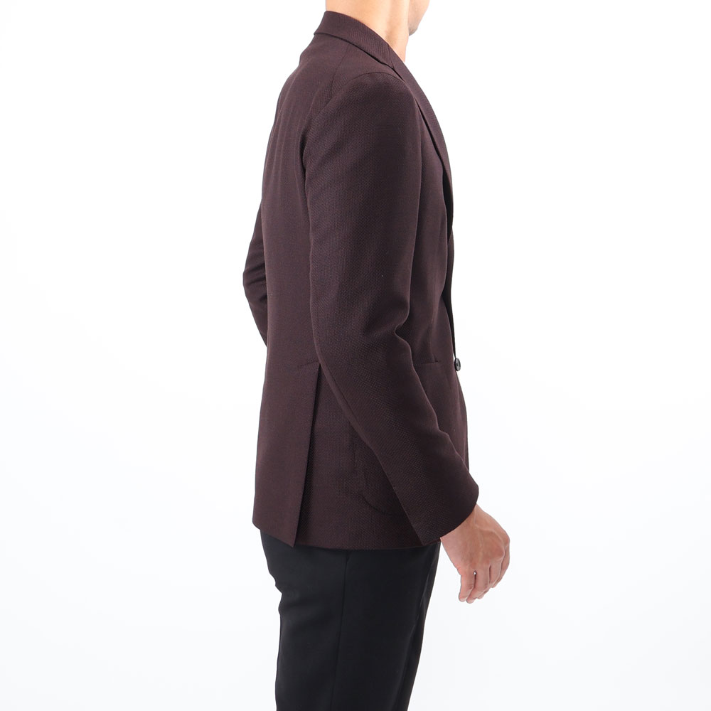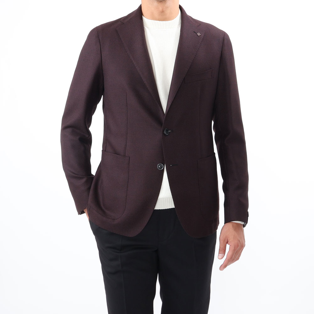 ・生地は、弾力性に富み、復元力を備えたウールのホップサック織り。適度な織り感があることで無地ながら単調に見え過ぎないジャケットベーシック生地の代表格です。目付けは325グラムと軽くしなやかな着心地も特徴。