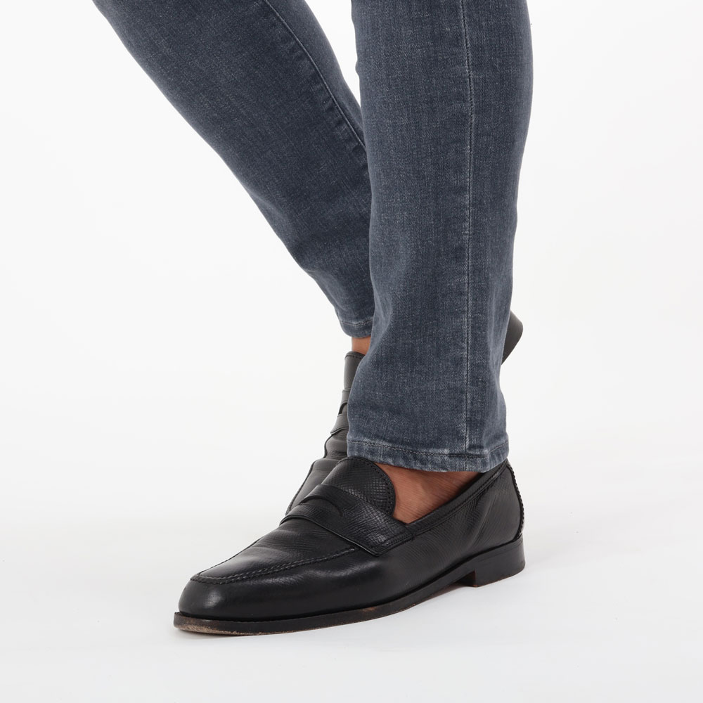足のラインに沿うすっきり細身のサイズ感。柔らかい生地感でストレッチも抜群なので、想像以上に快適な穿き心地です。