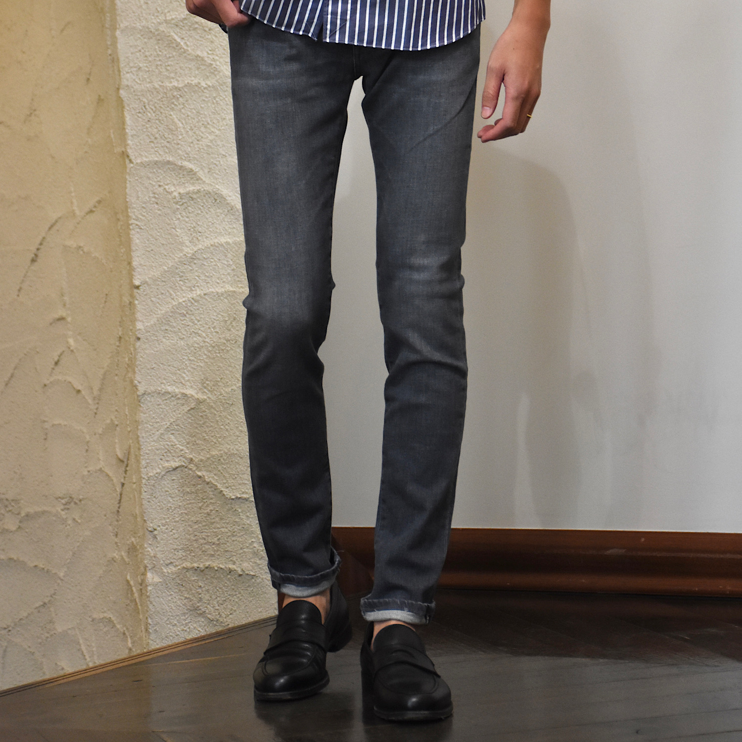 ・生地は今シーズンからリニューアルしたグレーデニム。ストレッチ性が高く、柔らかな風合いが特徴です。