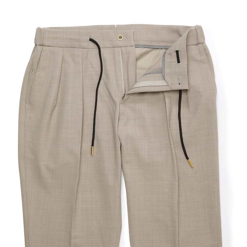 ・「BERWICH(ベルウィッチ)」の代表モデル"scotch(スコッチ)"は、B.R.SHOPで毎シーズン大好評を頂いているアイテムの一つ。人気の理由は2プリーツが入れられたユルい腰廻りとワタリにあります。下半身に程良い抜け感を演出するデザイン性ゆえ、他のブランドのパンツには無いリラックス感を味わう事が出来るのです。