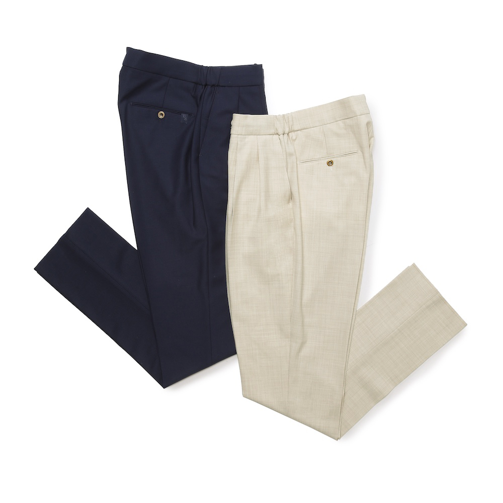 ・「BERWICH(ベルウィッチ)」の代表モデル"scotch(スコッチ)"は、B.R.SHOPで毎シーズン大好評を頂いているアイテムの一つ。人気の理由は2プリーツが入れられたユルい腰廻りとワタリにあります。下半身に程良い抜け感を演出するデザイン性ゆえ、他のブランドのパンツには無いリラックス感を味わう事が出来るのです。