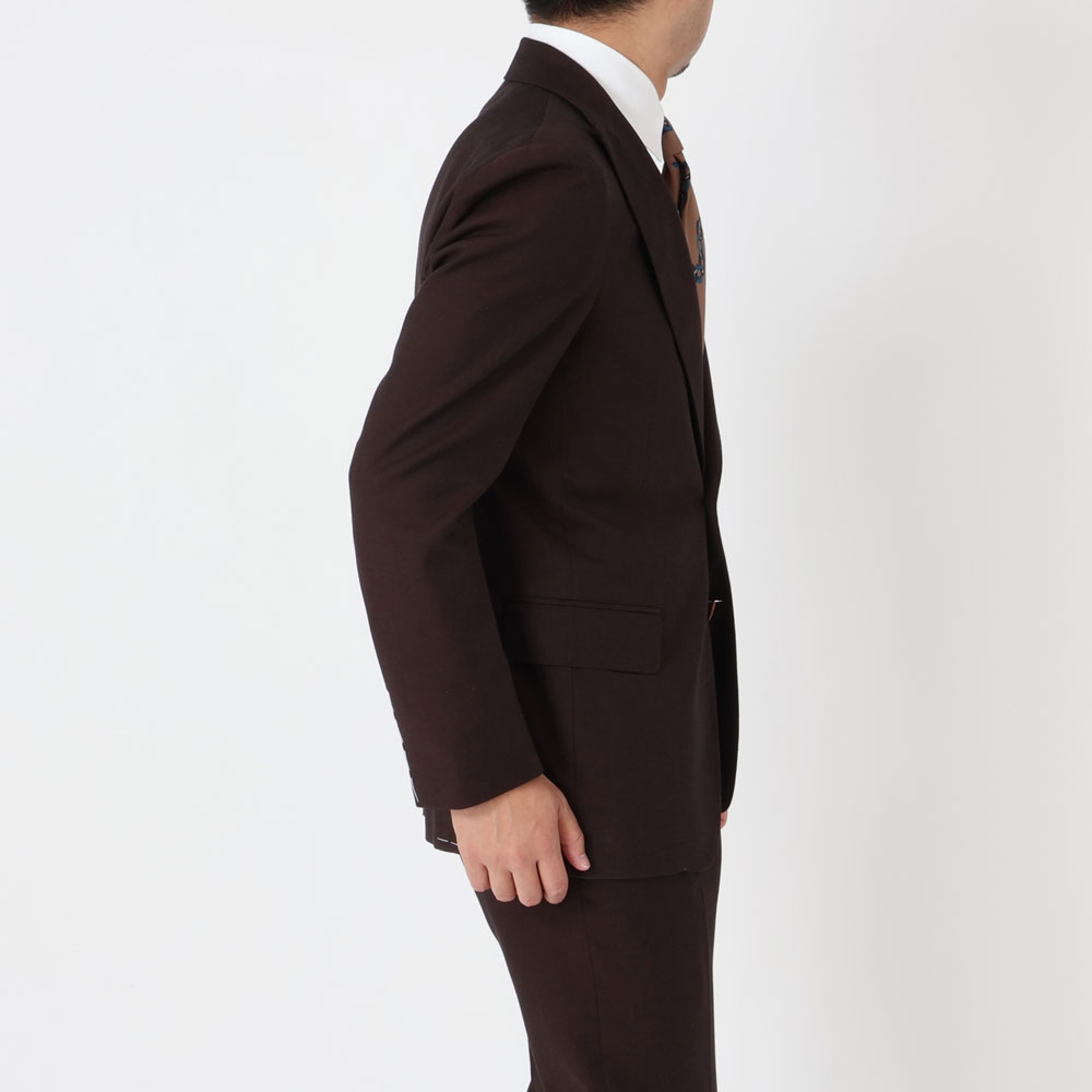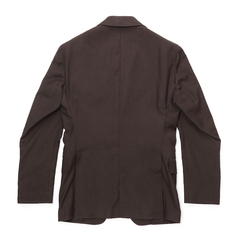 ・濃色ながら微妙に色合いにムラ感があり、重過ぎない印象。また綾織りの端正さも味わえる一着です。
