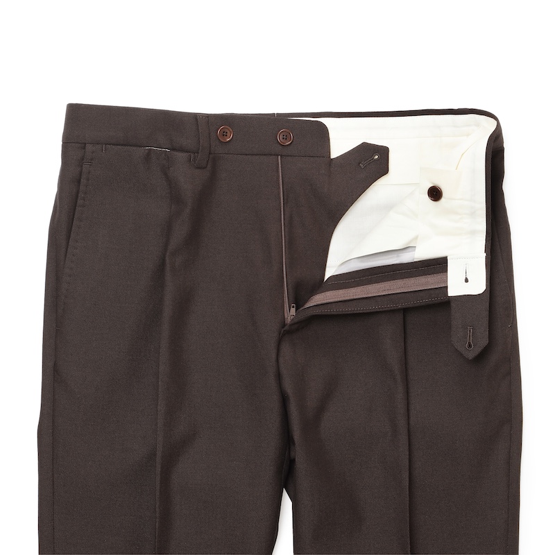 ・パンツは1プリーツのテーパードシルエット。適度な股上で腰廻りを包み込み、緩やかなテーパードラインで穿く人をバランス良く見せてくれるシルエットです。