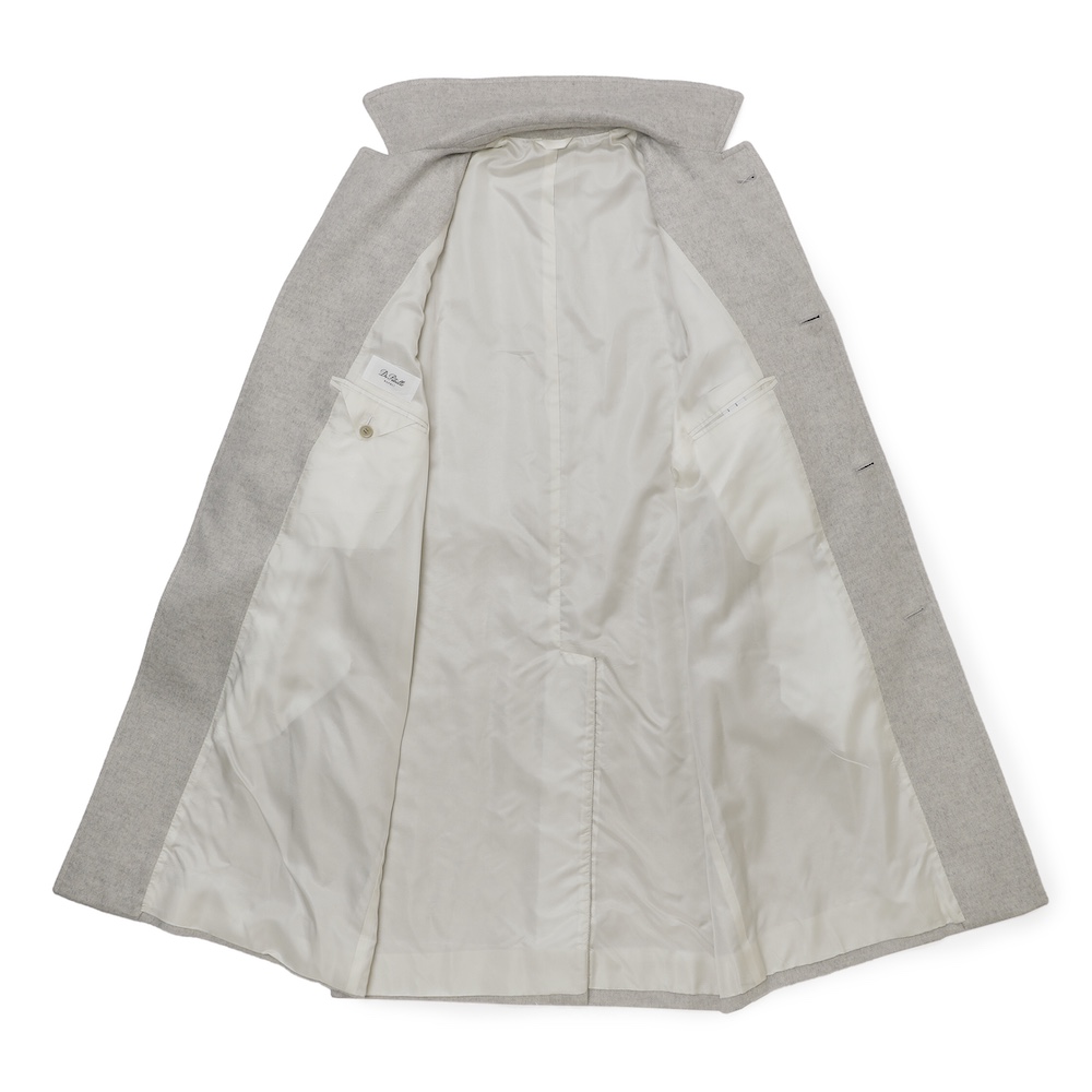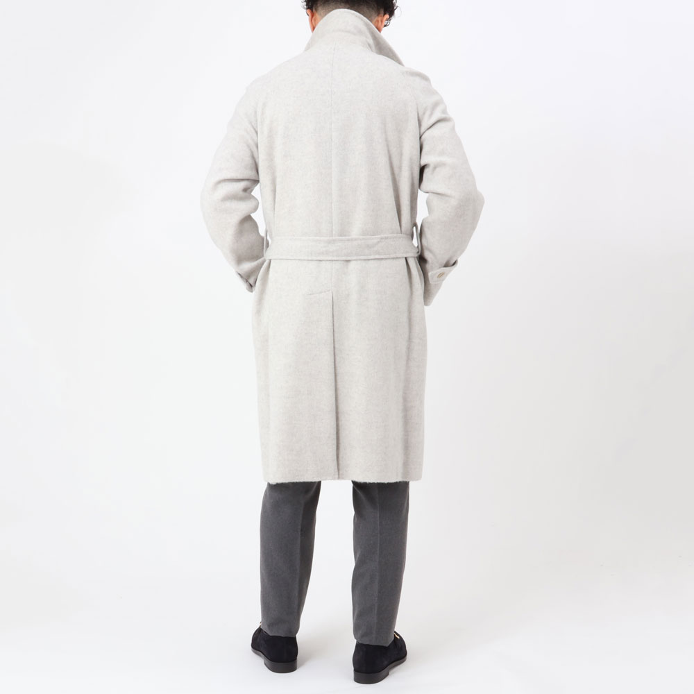 ・ナチュラルなフィット感と流れるようなシルエットからドレープ感を楽しめるこちらは「De Petrillo(デ ペトリロ)」の"PETRUCCI"。いわゆるバルカラーコートにベルテッド仕様を加えたものですが、スプリットラグランスリーブによってシャープな見え方と動きやすさを両立。襟の大きさやバランスが良く、襟腰があることによって襟立ちが秀逸です。