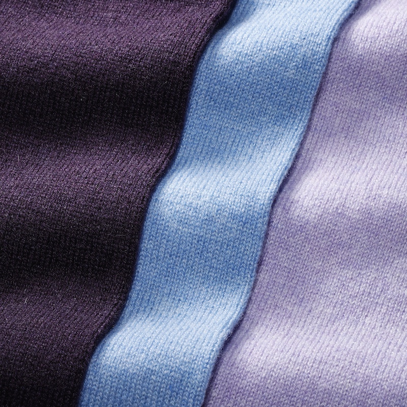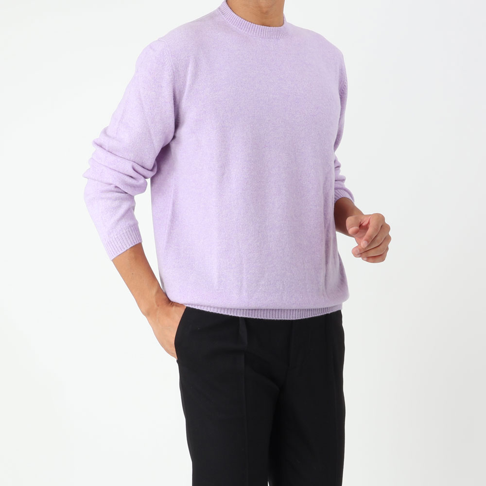 ・編み地は1プライ12ゲージで、薄過ぎず、厚過ぎずなあんばいに仕上げられています。1プライ12ゲージでも薄過ぎない理由は、使用しているカシミアがイタリアの高級紡績メーカーであるカリアッジ社のものだから。フワフワで優しい肌触りと、美しい色合いが実にラグジュアリーです。