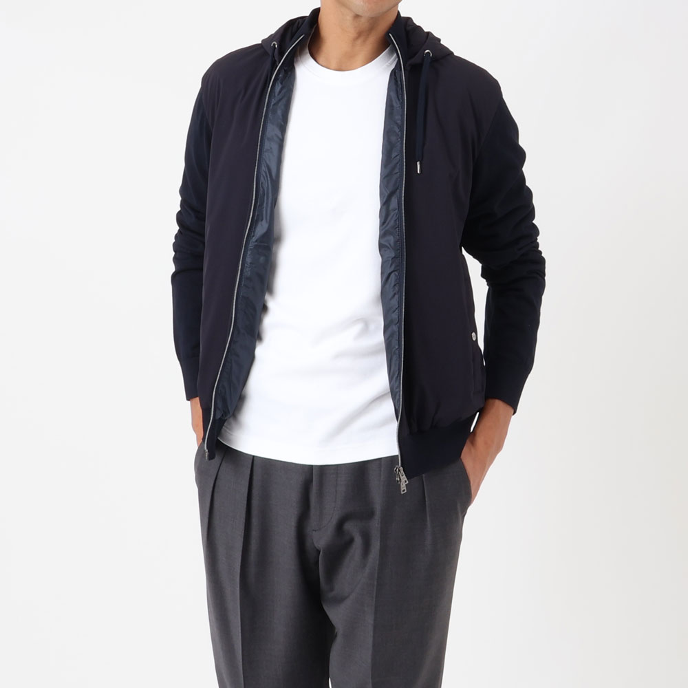 ・「HERNO(ヘルノ)」の”Resort(リゾート)”ラインは、ラグジュアリー&コンフォータブルに特化したコレクション。その”Resort(リゾート)”ラインから、ニットとストレッチナイロンを組み合わせた軽い着心地のパーカーをご紹介。