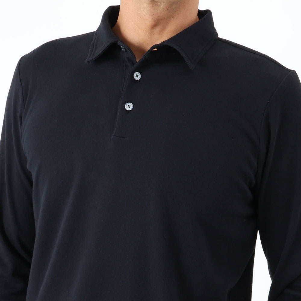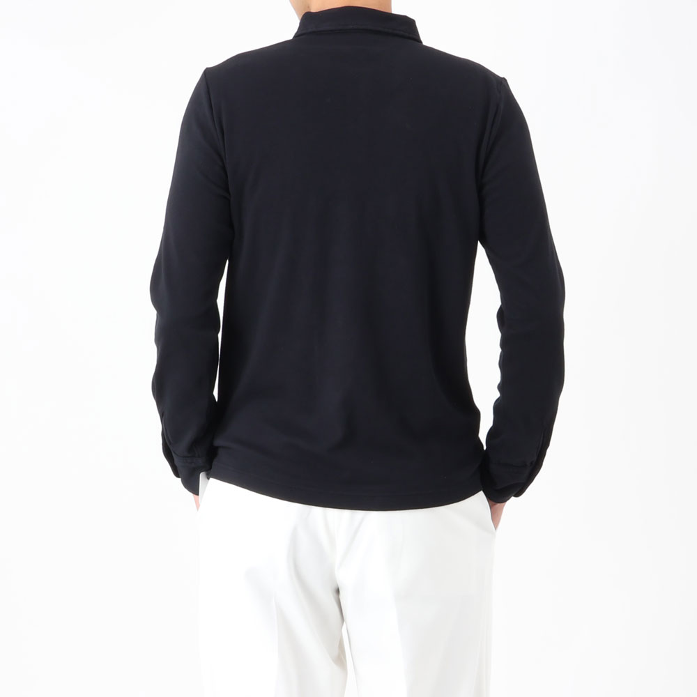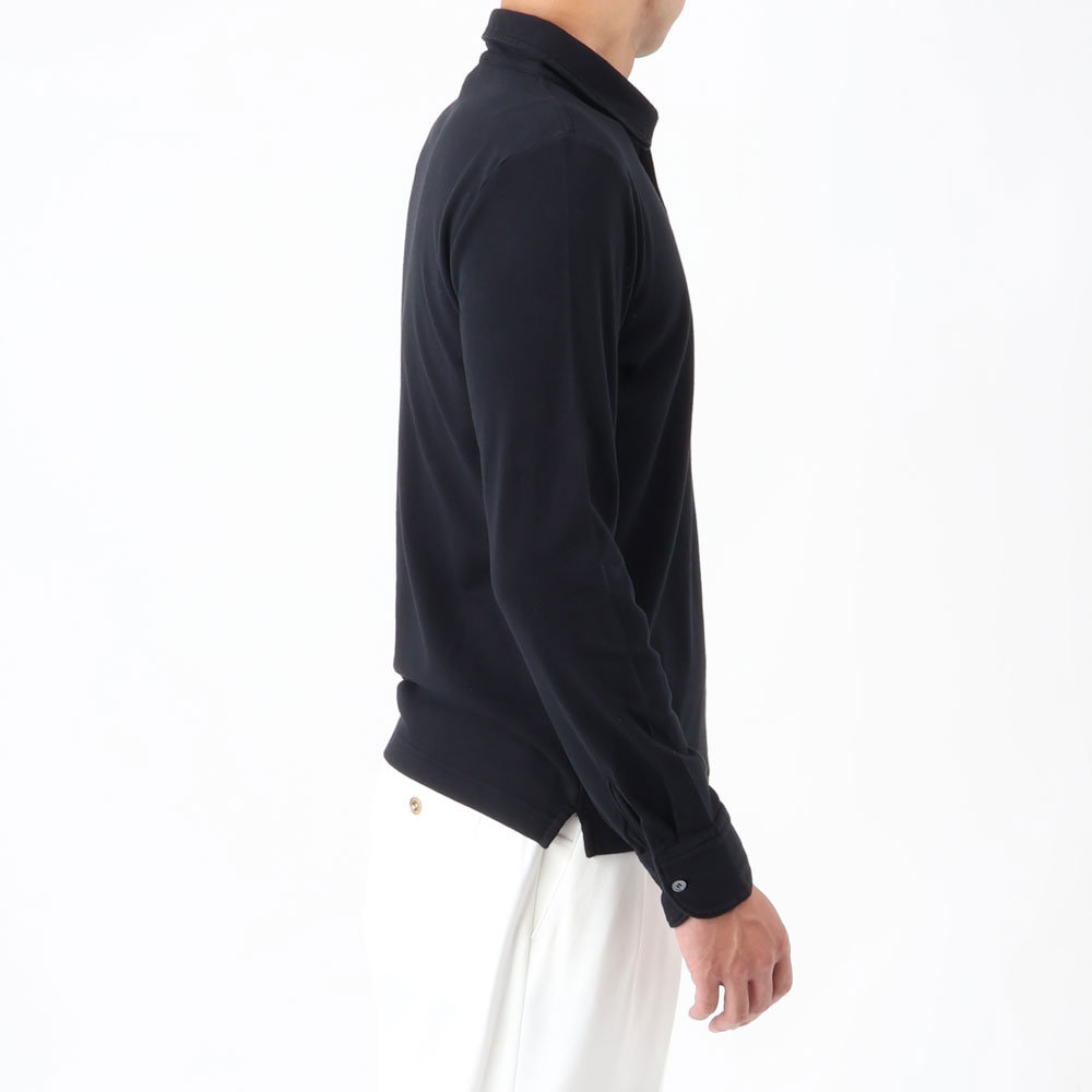 ・特徴的なのは台付きの小ぶりな襟。台襟があることでジャケットのインナーとしても収まりが良く、一枚で着ても小ぶりな襟はシャープな印象を与えます。