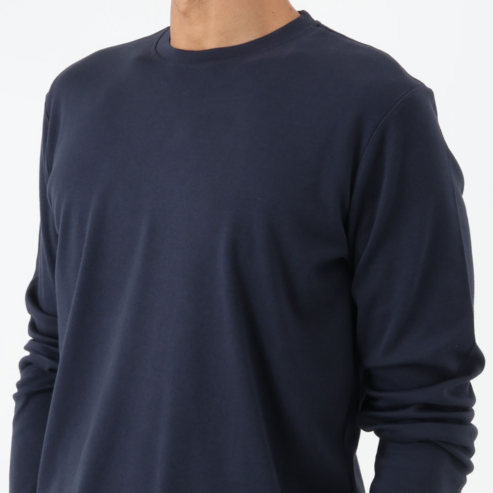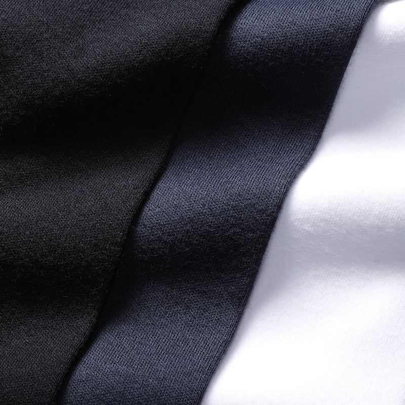 ・素材は両面編み(インターロック)のジャージー。肌触りがとても良く、伸縮性も抜群です。後染めゆえの馴染みのよい生地感で快適な着心地をお約束します。