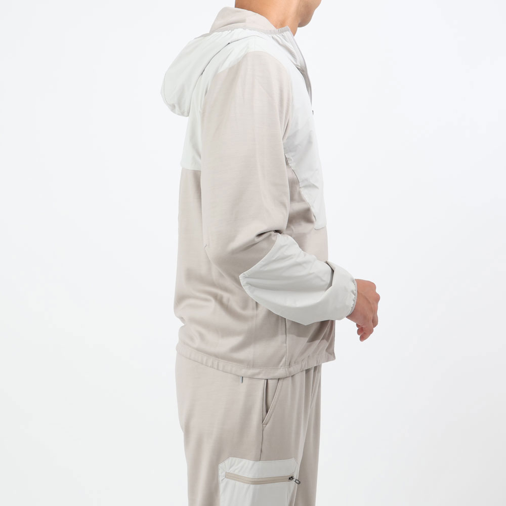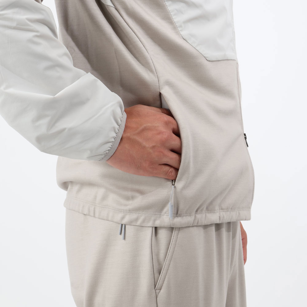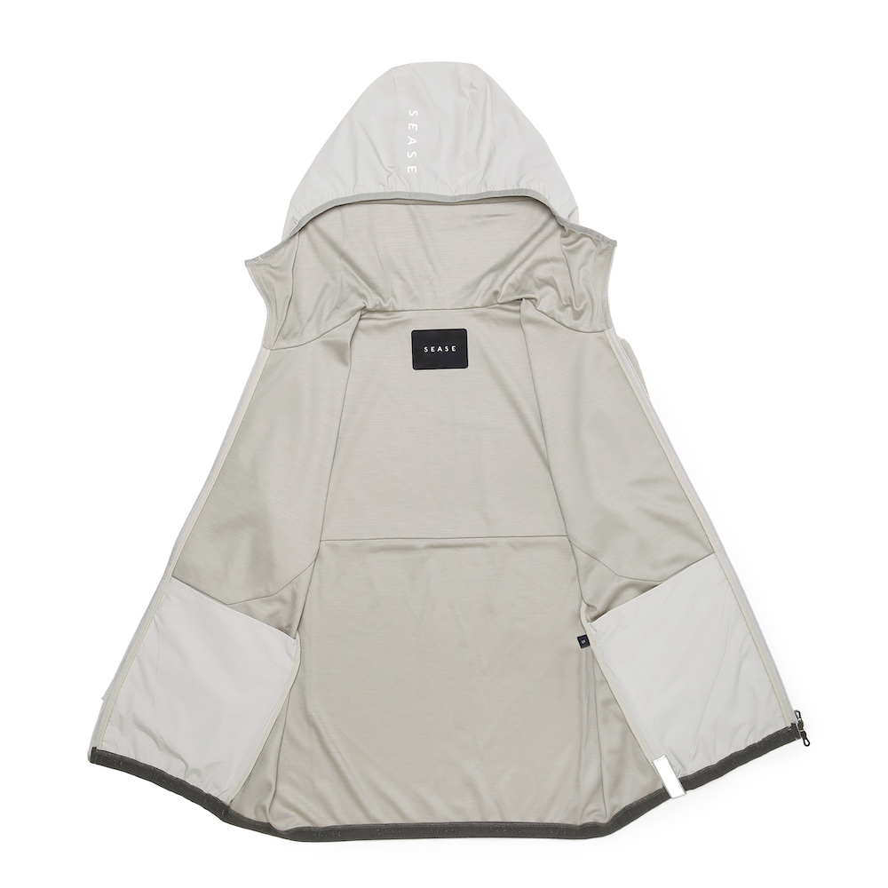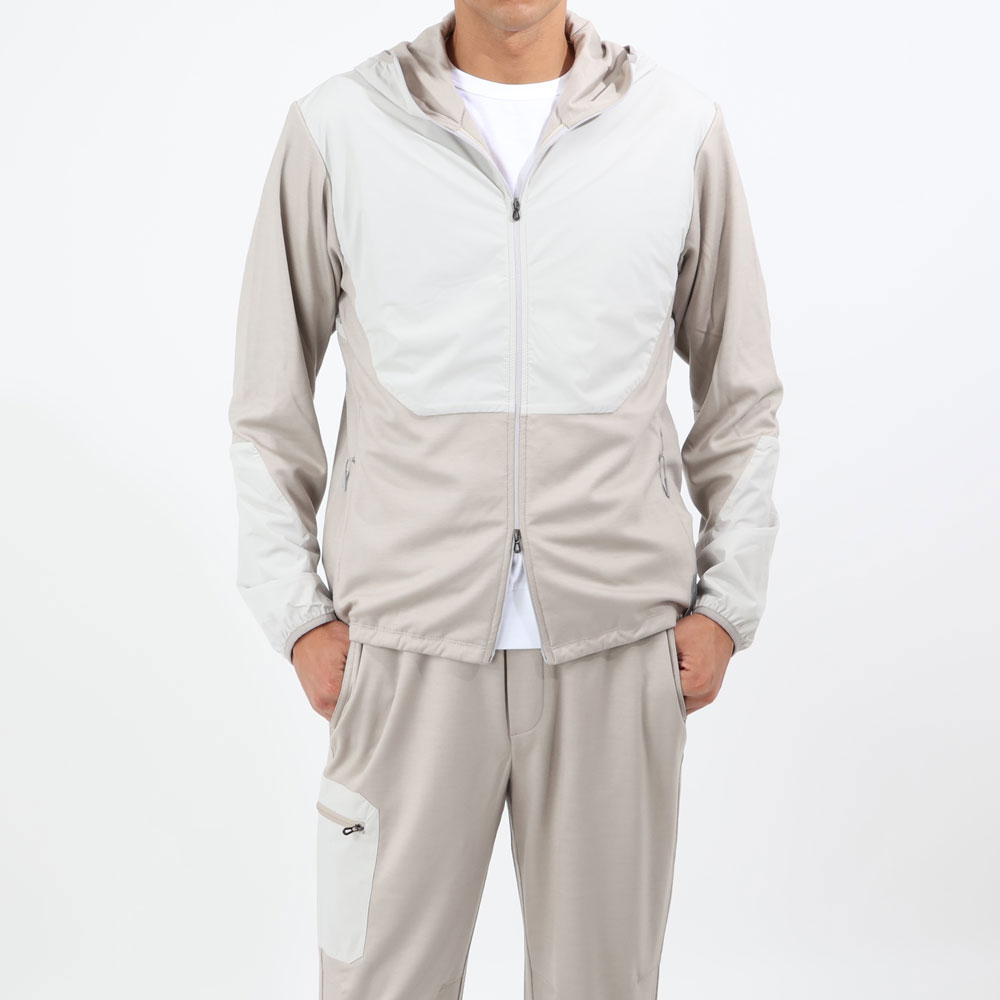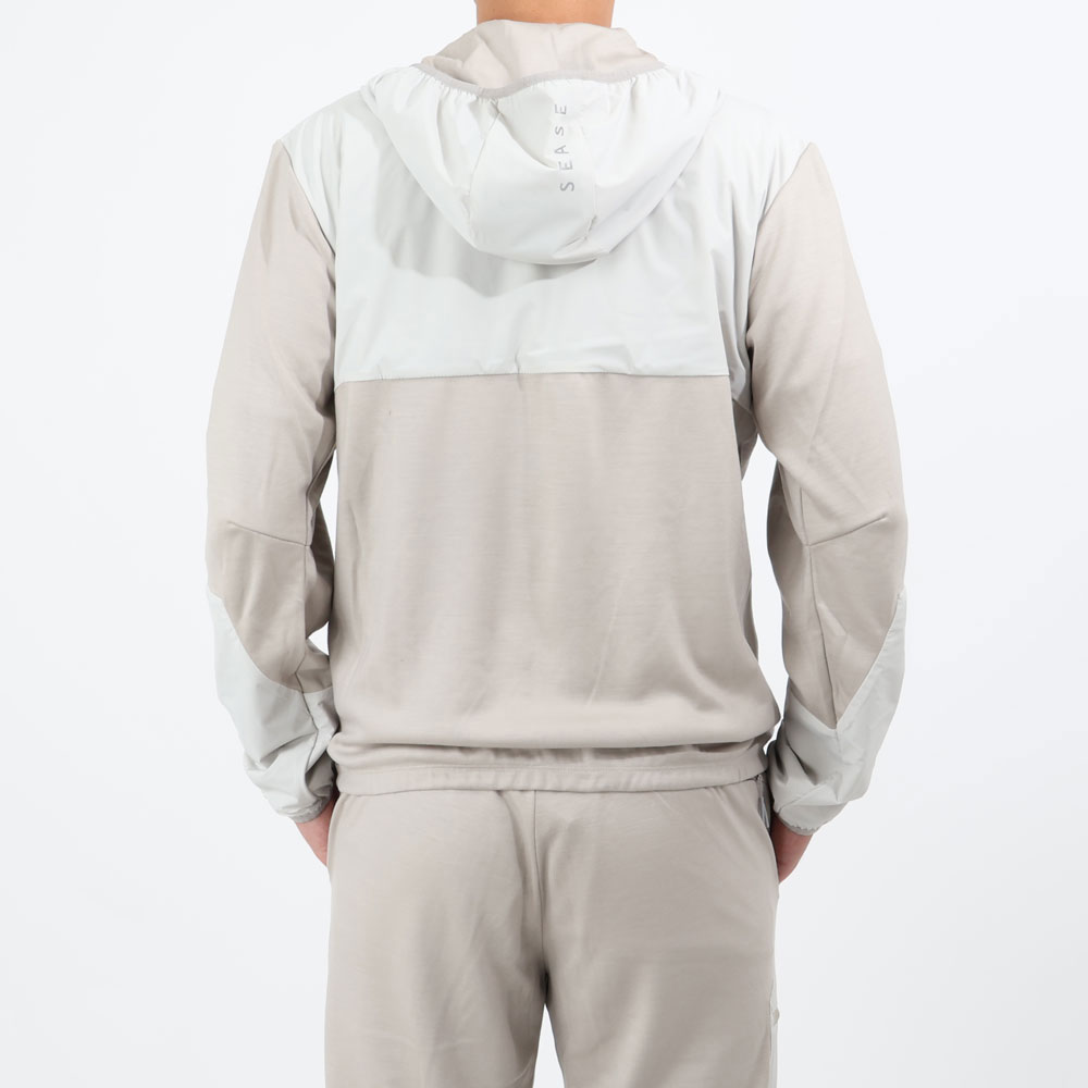 ・”ジップドフーディー ハイブリッド”と名付けられたラグジュアリースポーツな一着は、「SEASE(シーズ)」らしい贅沢な素材使いが光る一着。