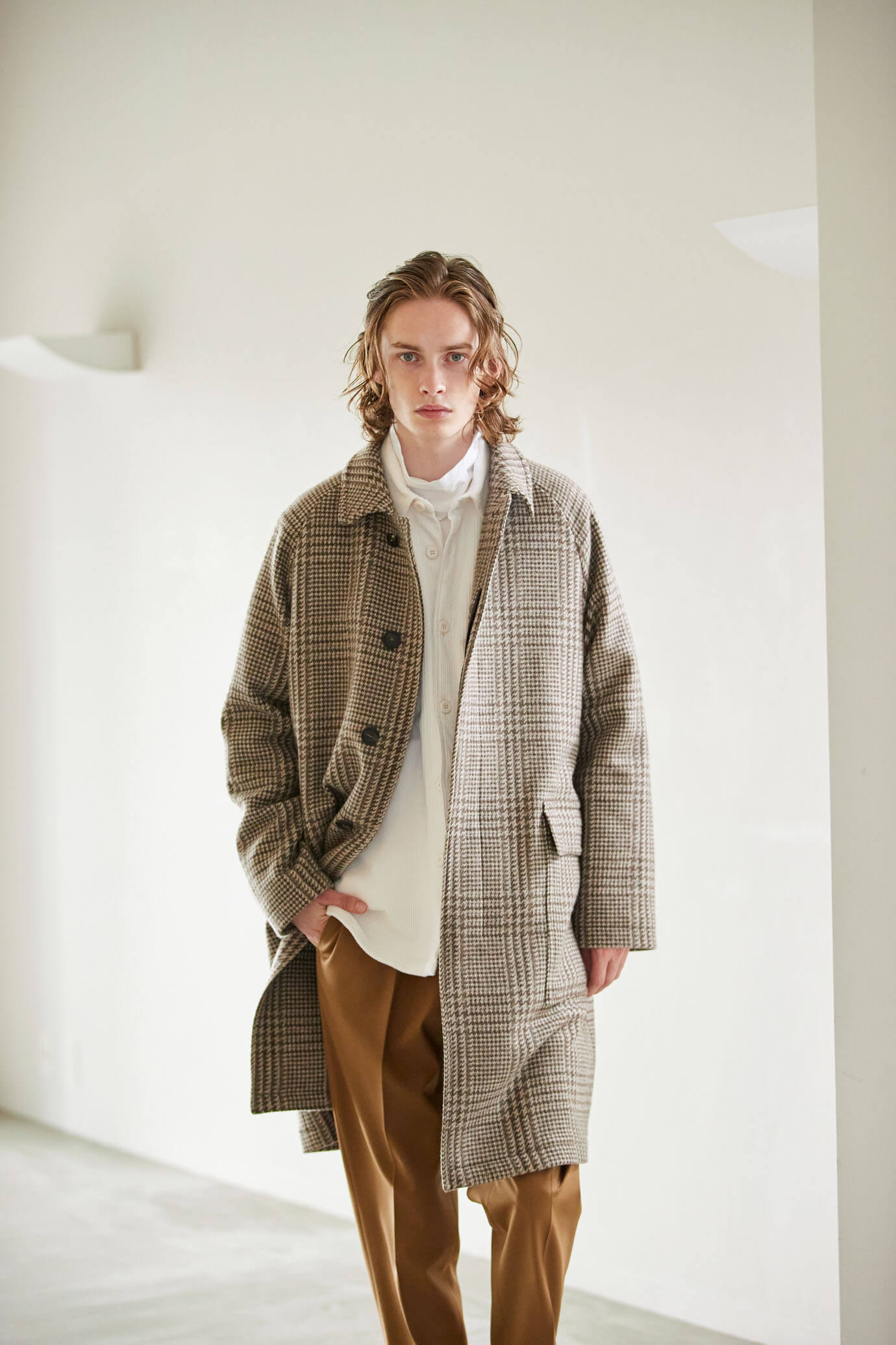 ・ラグランスリーブ、フライフロントとベーシックなデザインのバルカラーコートながら、それに加えられたベルテッド仕様が「TAGLIATORE(タリアトーレ)」らしいところ。ウエストを絞ってグラマラスに見せることはもちろんのこと、無造作に腰ポケットに入れたり、ベルトがあるだけで着こなしの幅が広がります。