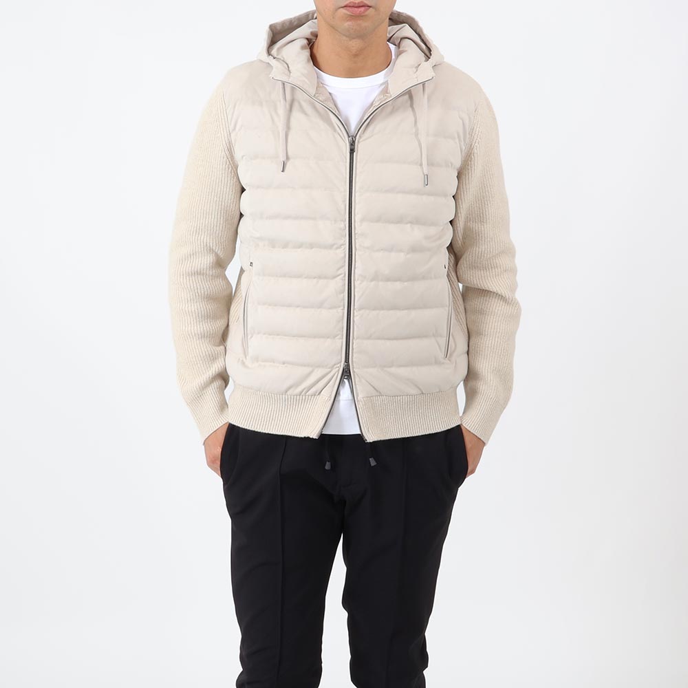 ・「HERNO(ヘルノ)」の”Resort(リゾート)”ラインは、ラグジュアリー&コンフォータブルに特化したコレクション。その”Resort(リゾート)”ラインから、ニットとスウェード調生地を組み合わせた軽い着心地のダウンパーカーをご紹介。