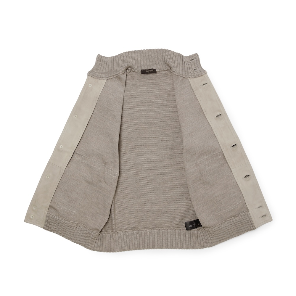 ・袖と後身頃にはミドルゲージくらいのリブ編みウールニットが配された異素材コンビネーション。フワッと柔らかなニットの質感とスウェードの風合いが見事にマッチした一着です。シルエットはクセがなくスタンダード。幅広い体型にフィットします。