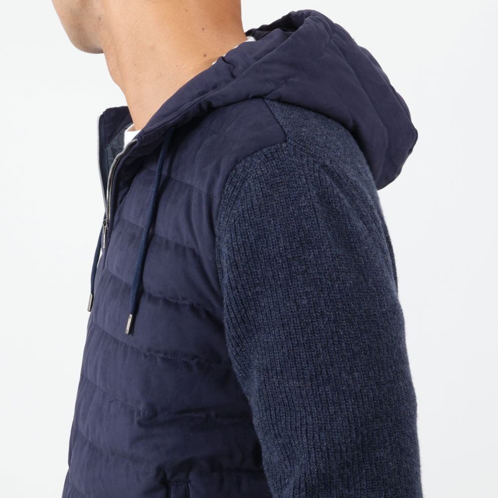 ・「HERNO(ヘルノ)」の”Resort(リゾート)”ラインは、ラグジュアリー&コンフォータブルに特化したコレクション。その”Resort(リゾート)”ラインから、ニットとスウェード調生地を組み合わせた軽い着心地のダウンパーカーをご紹介。