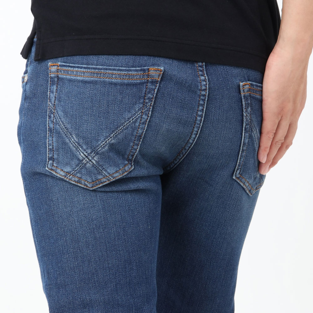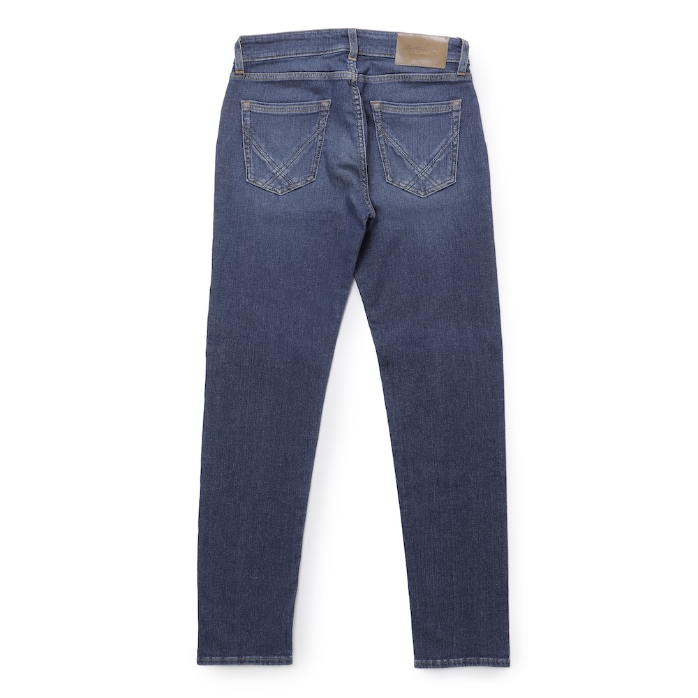 ・アメリカンデニムを踏襲しつつ、イタリアらしい洗練されたシルエットと長い年月をかけて穿いたかのようなこなれ感ある風合いが魅力。また、リベットやフロントボタンにはブランドのロゴが刻印されておりディテールにも抜かりがありません。