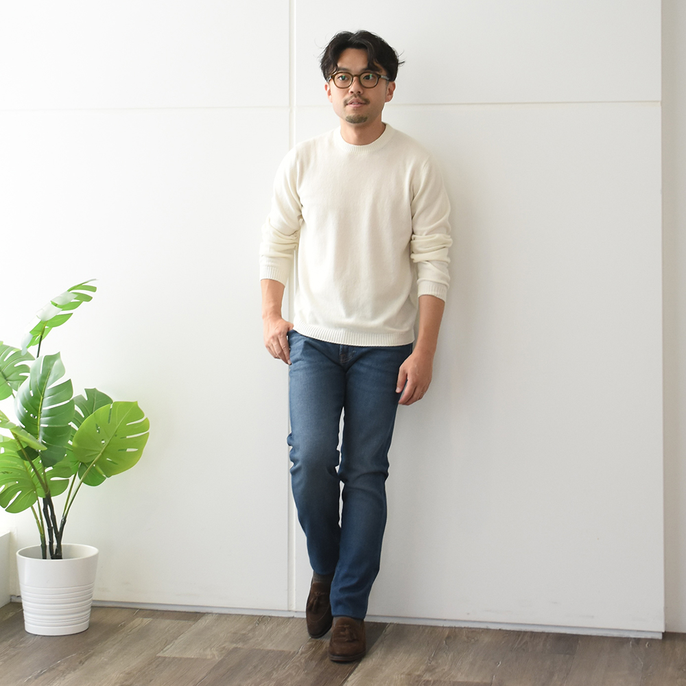 ・こちらの最大の特徴はジャージーデニムを採用している点。見た目はデニム、でもジャージーなのでびっくりするほどストレッチ!高い伸縮性によりノンストレスの穿き着心地が味わえます。