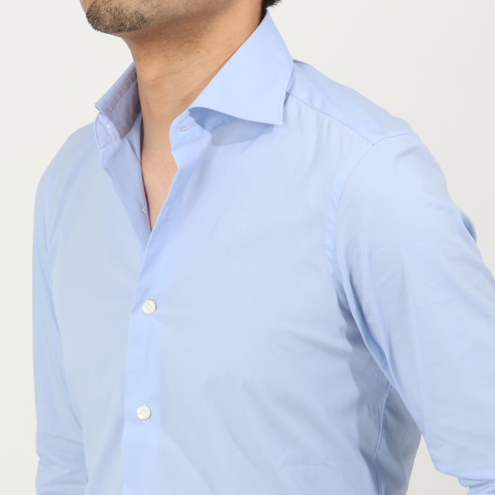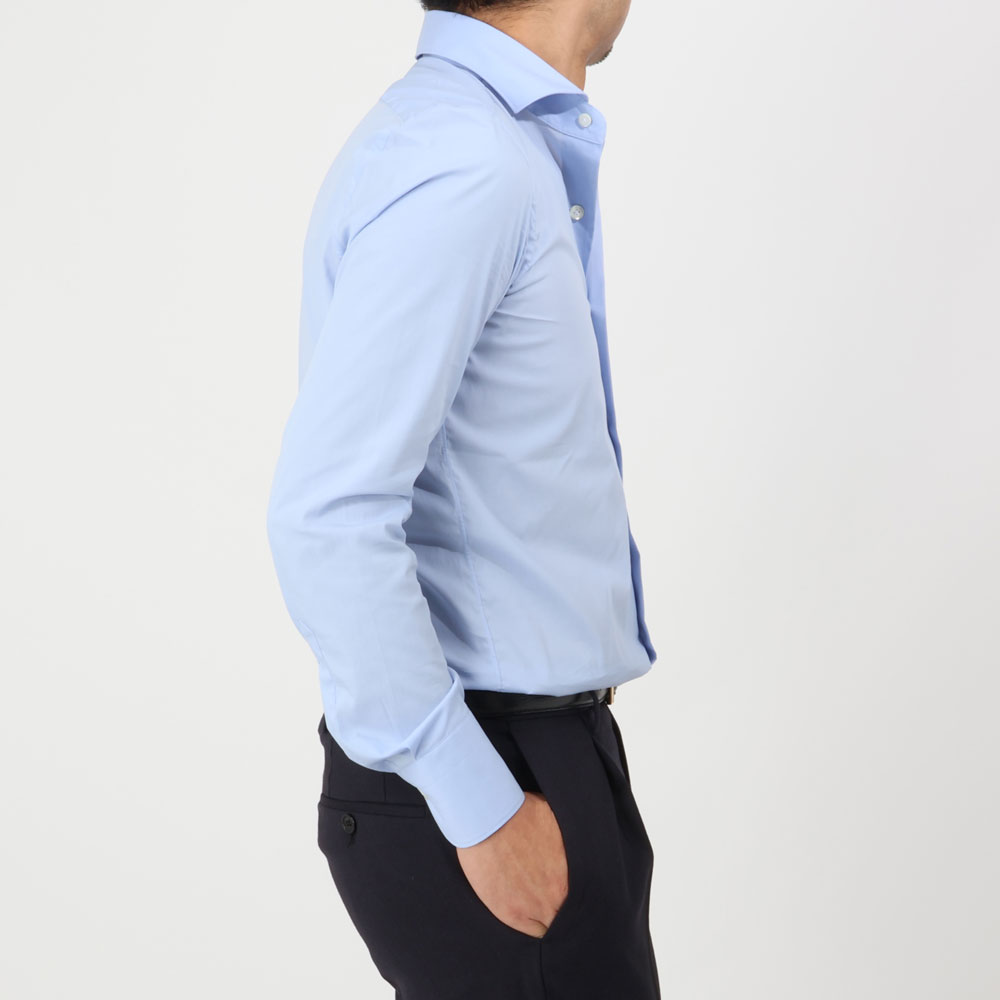 柔らかで滑らかなタッチ&伸縮性により長時間着ていてもストレスがないシャツです。シワになりにくい為、出張の時にも活躍します。サイズ37を着用し丁度良いサイズ感でした。すっきりとしたサイズ感ですので上半身しっかり目の方はワンサイズUPがお勧めです。