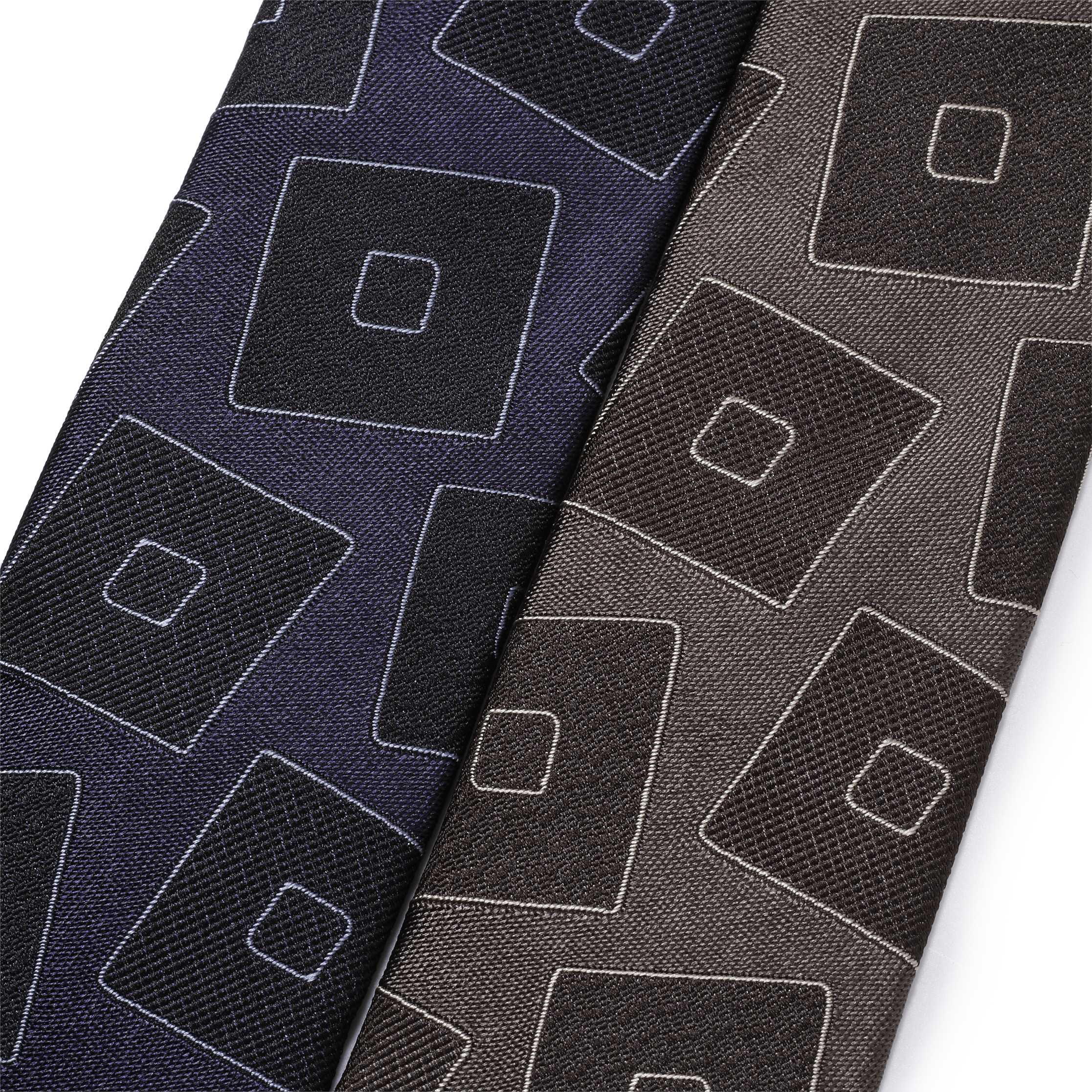 ・こちらは華やかなサテン織りをベースに同系の配色で抑揚が効いています。角度によって微光択が出て、地味派手な一本。