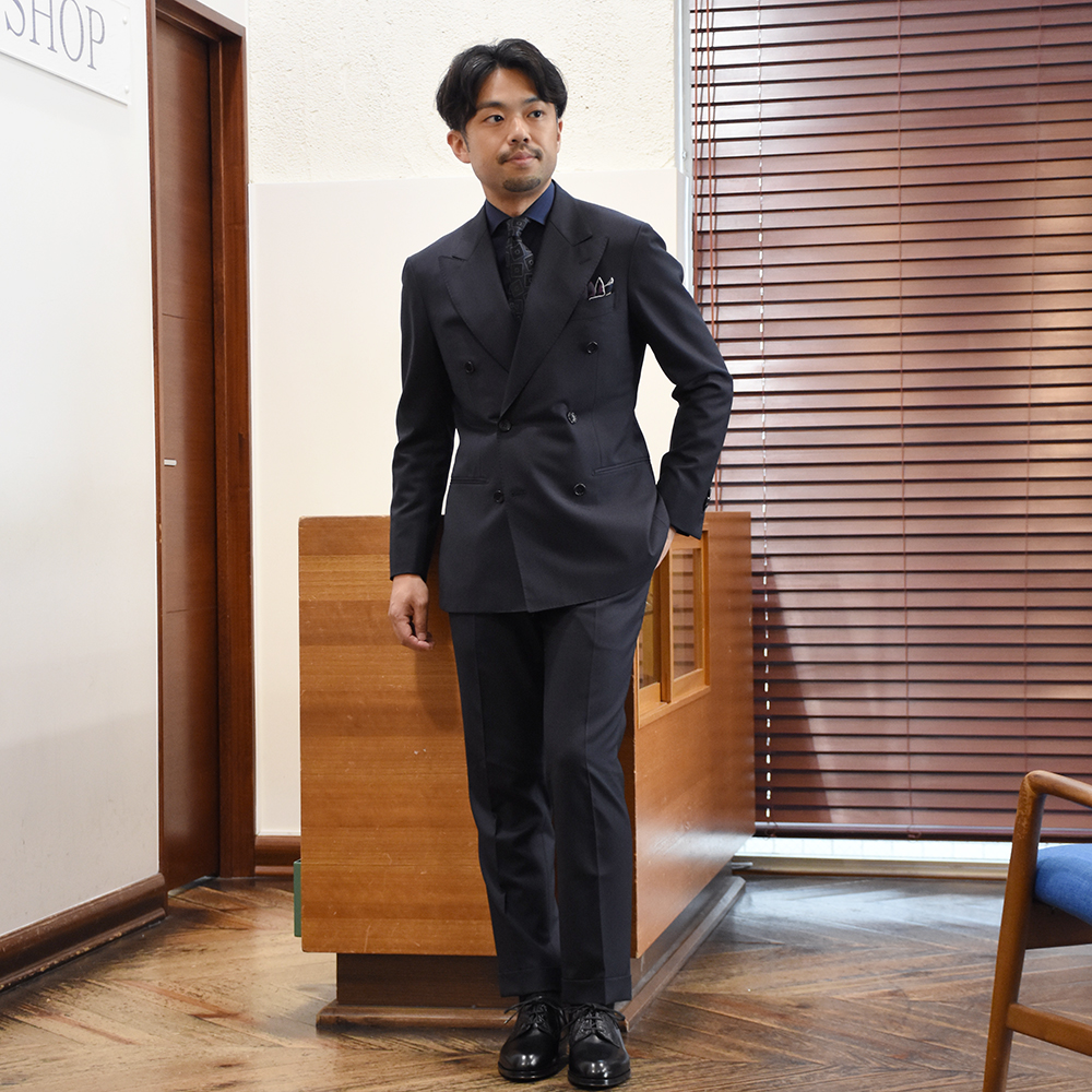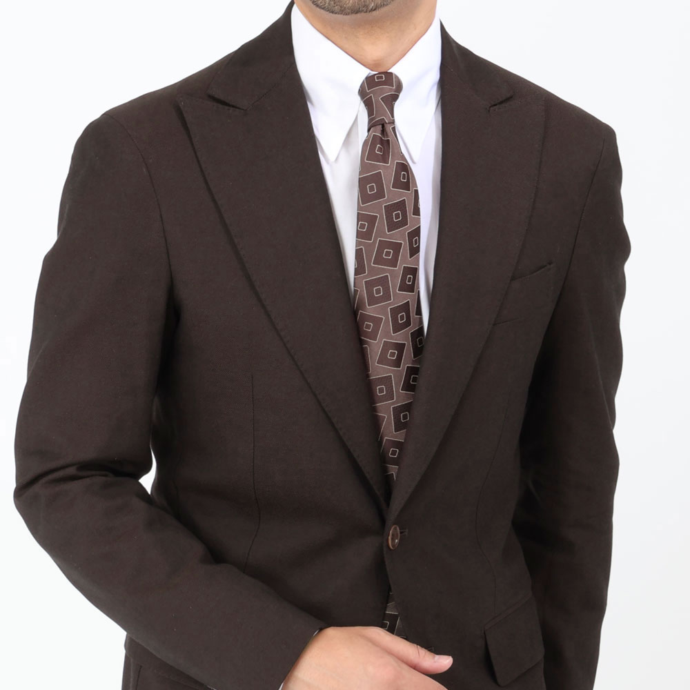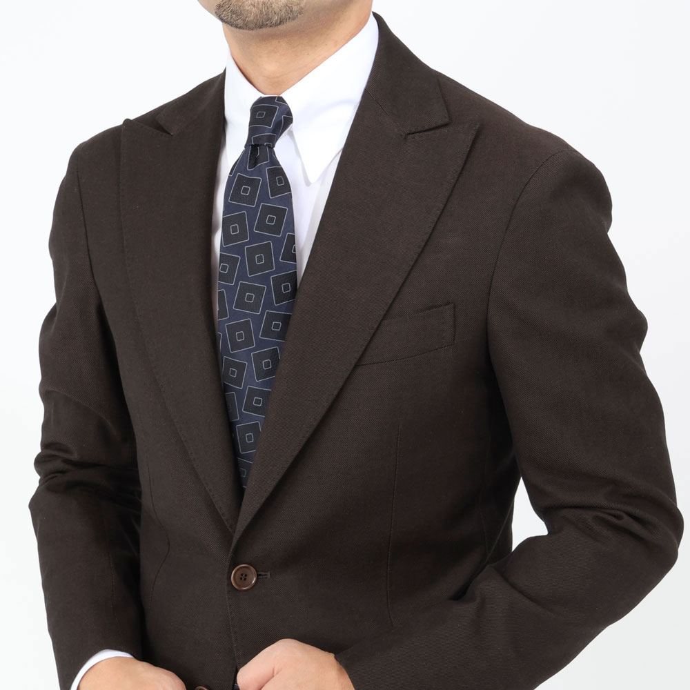 ・「Holiday & Brown(ホリデーアンドブラウン)」をBRでは7.5センチのネクタイ幅で展開。ほんのりモード感あるスマートなVゾーンをお楽しみ頂けます。2色のラインナップ。