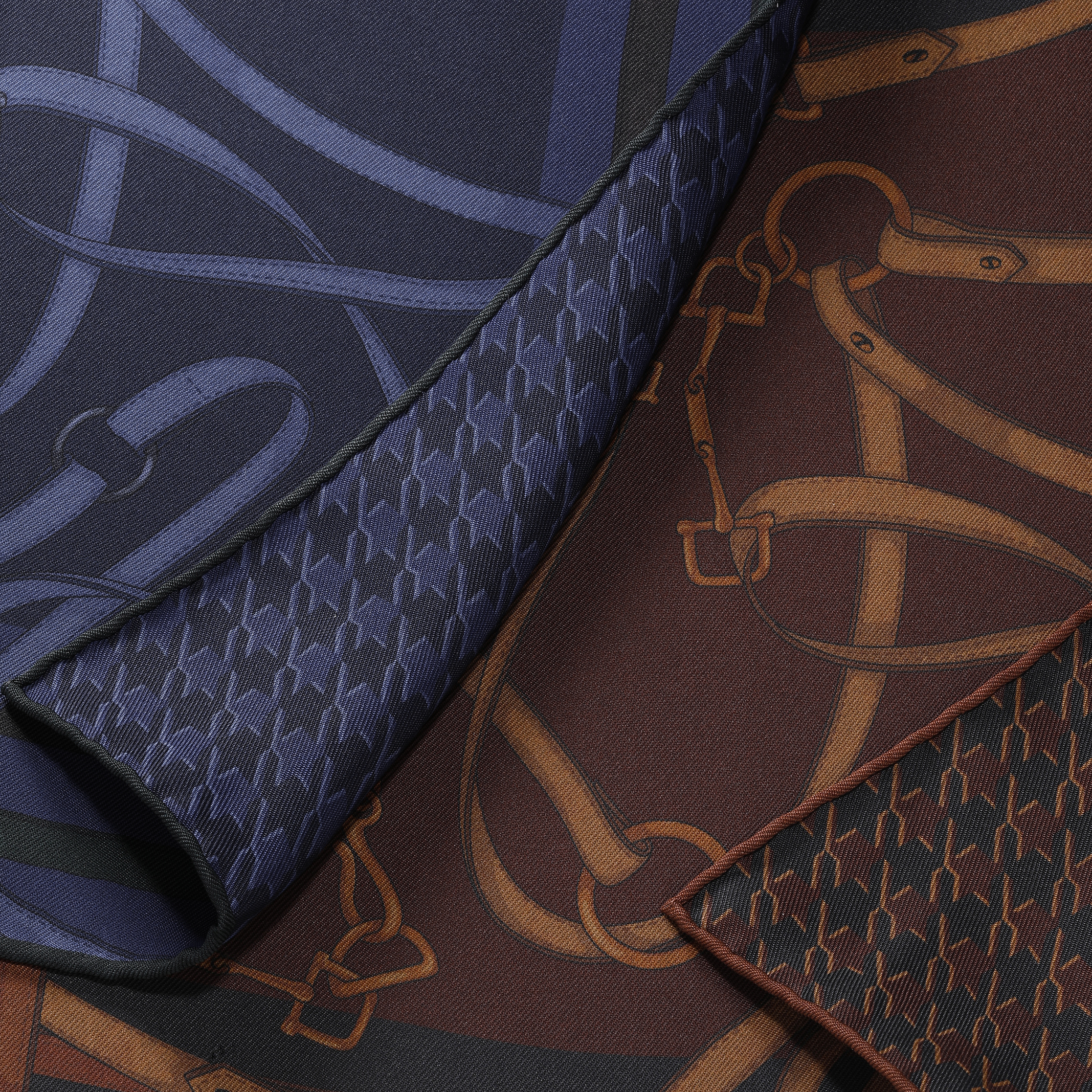 ・両面に異なる柄がプリントされたシルクチーフは「Holiday & Brown(ホリデーアンドブラウン)」の技術力の高さを物語るアイテム。それぞれの柄に影響することなく、美しい仕上がりです。胸元に挿しておけば、会話のきっかけにもなる!?優れ物です。2色のラインナップ。