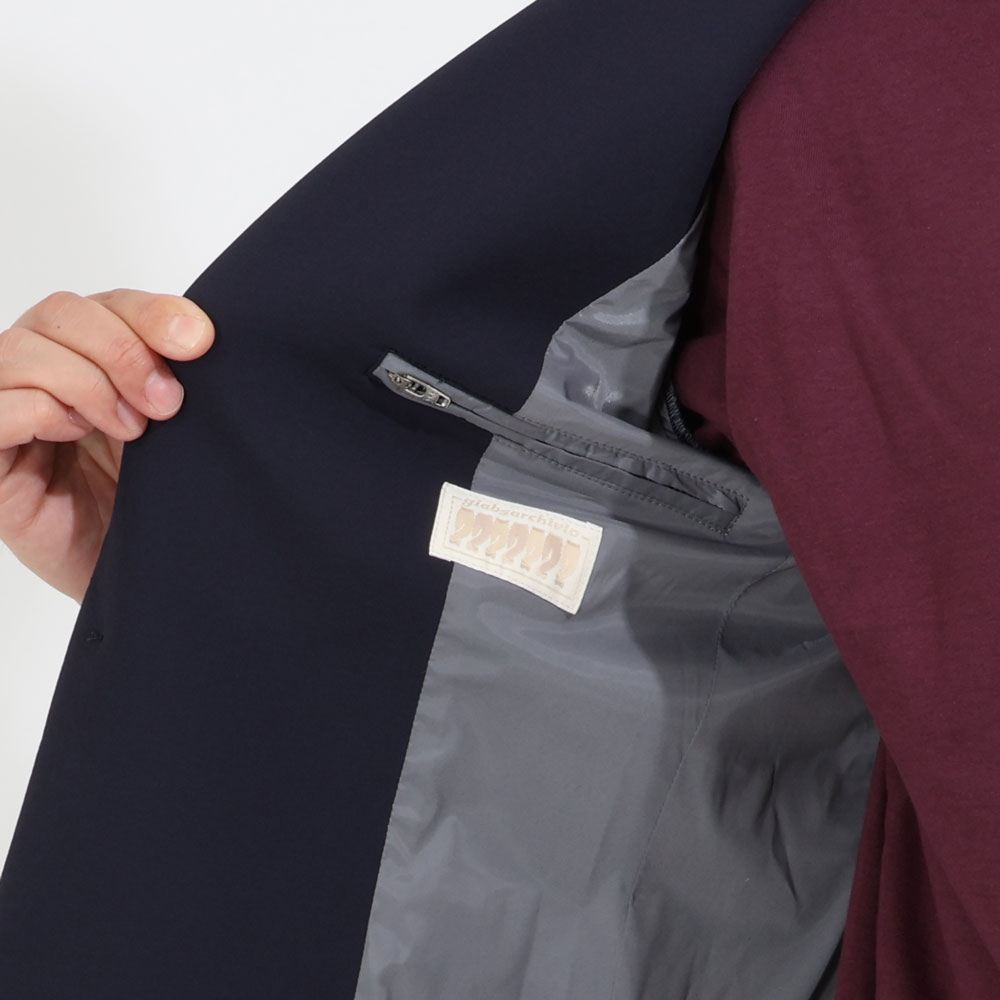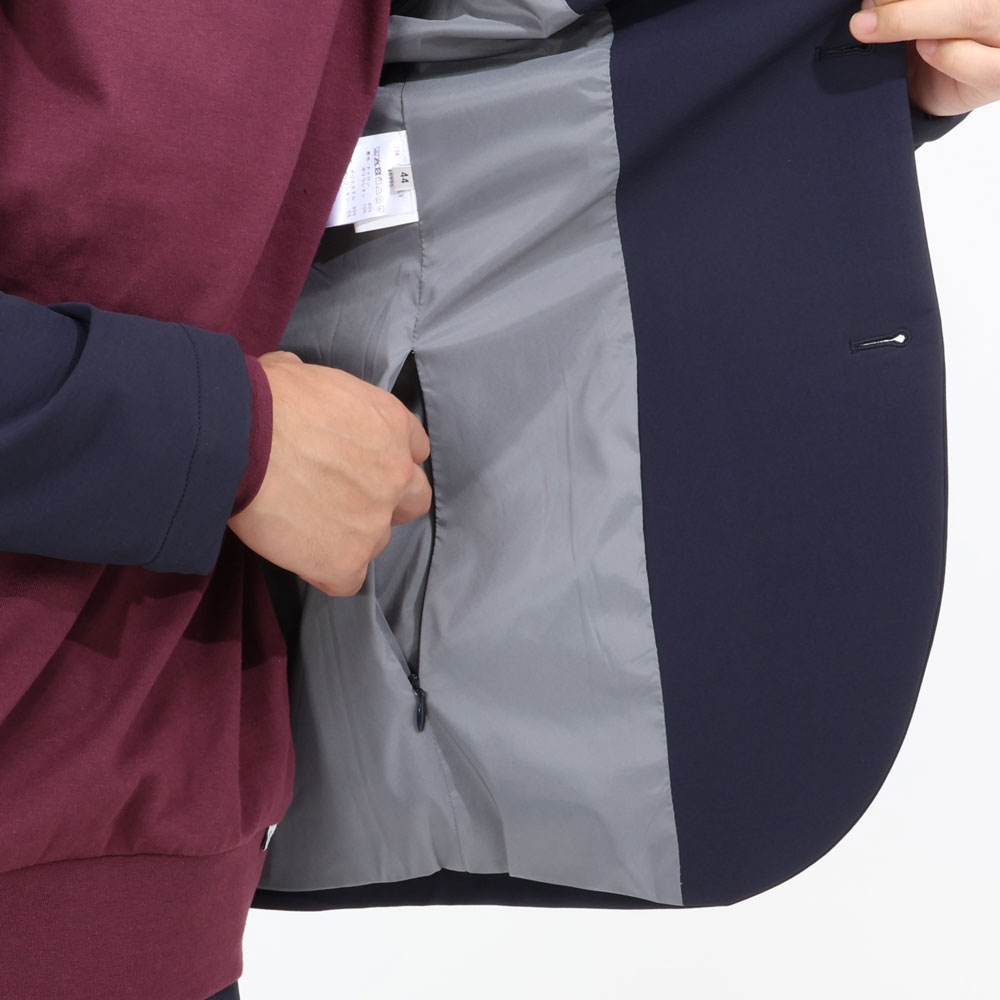 程よい厚みの生地によってきちんと感があり春先まで着れてしまうほどの生地感です。またハードな動きをしてもストレッチ性抜群のため快適。ZIP付きのポケットによってモノを落とす心配もなく、ポケット数も豊富で機能的です。インナーはカットソーや薄手のニットを使って軽快なジャケットスタイルが楽しめます。サイズ44を着用しジャストサイズ感でした。