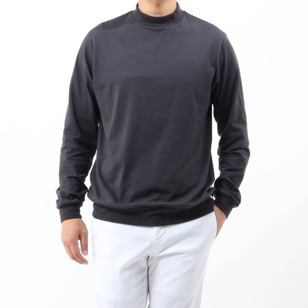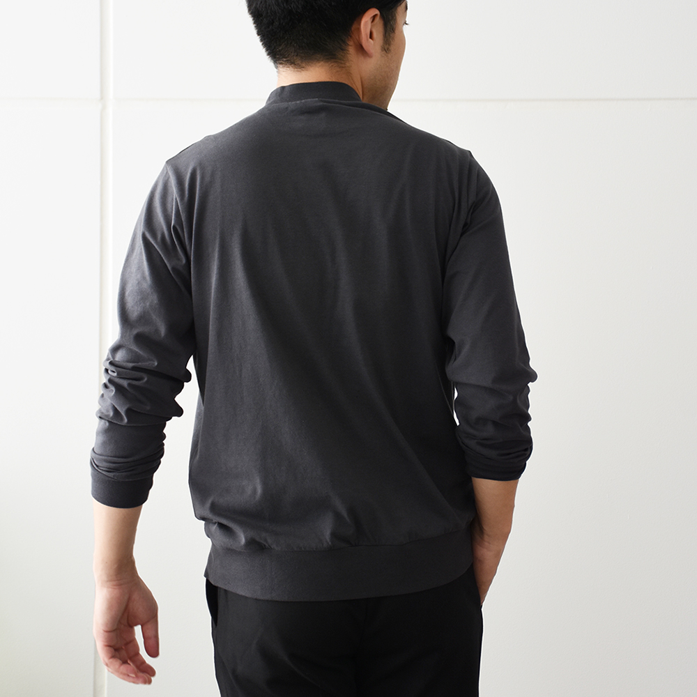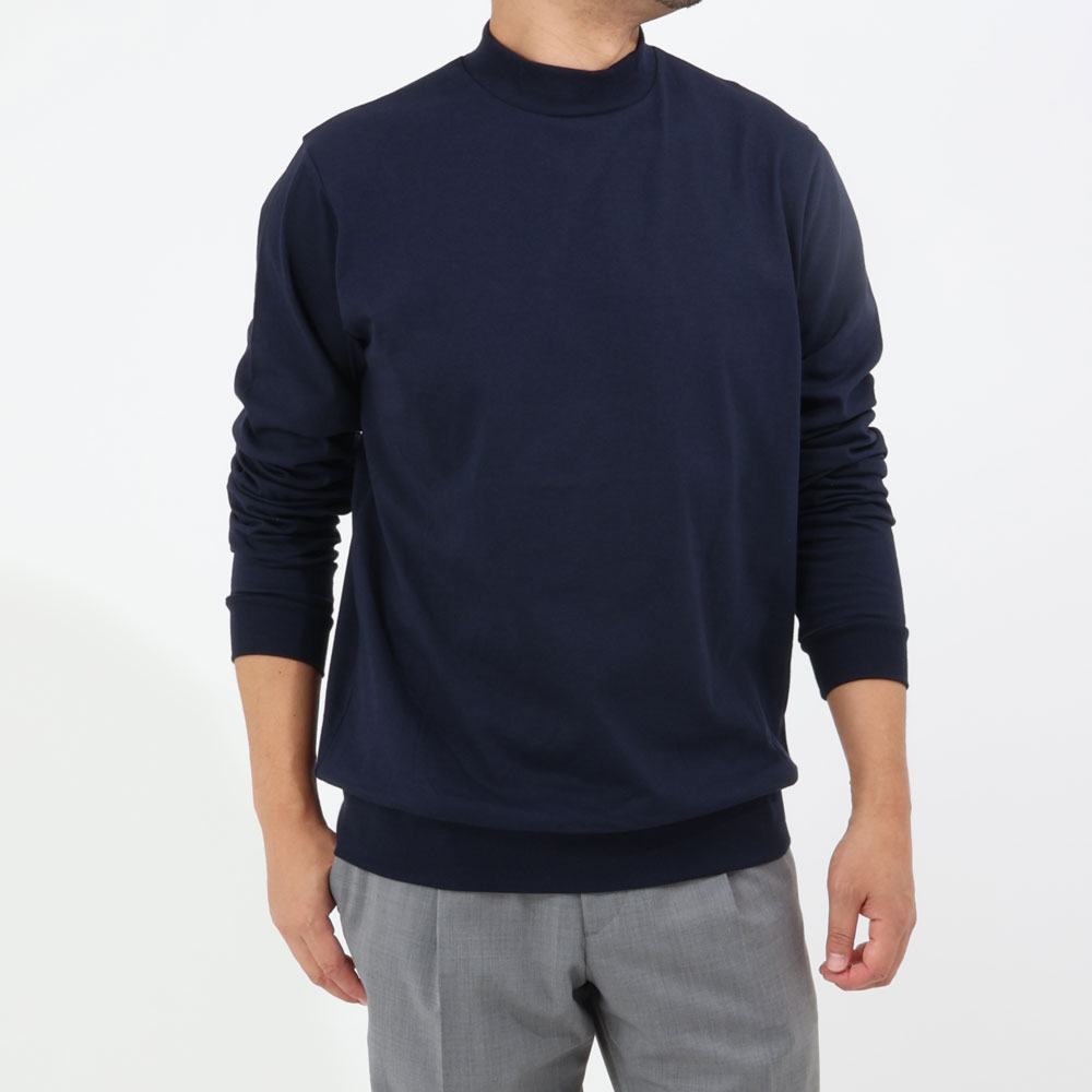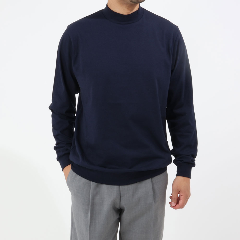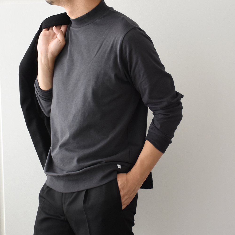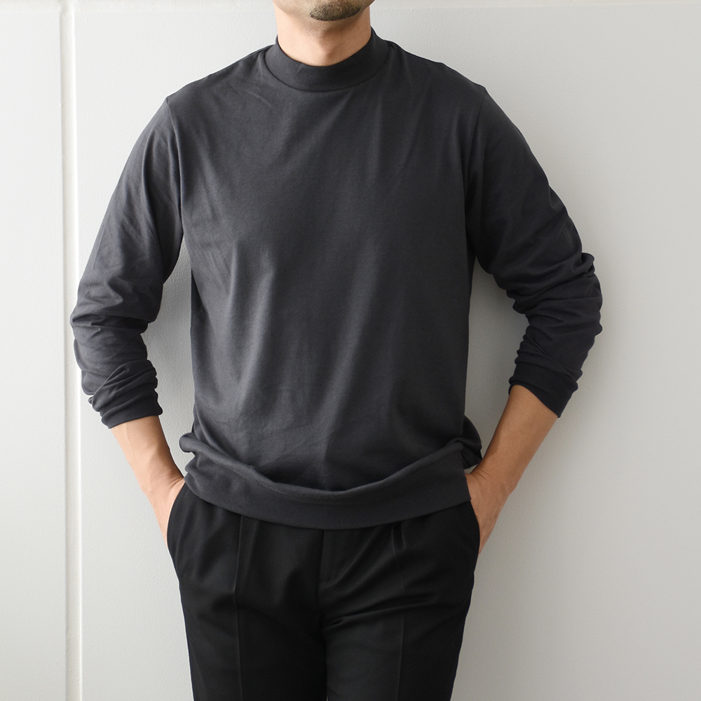 ・ネックがほんのり高いモックネックはジャケットやアウターを着る際の強い味方。汚れ移りを防ぎます。もちろん一枚で着てもさりげなく洒落っ気を醸すアイテムです。