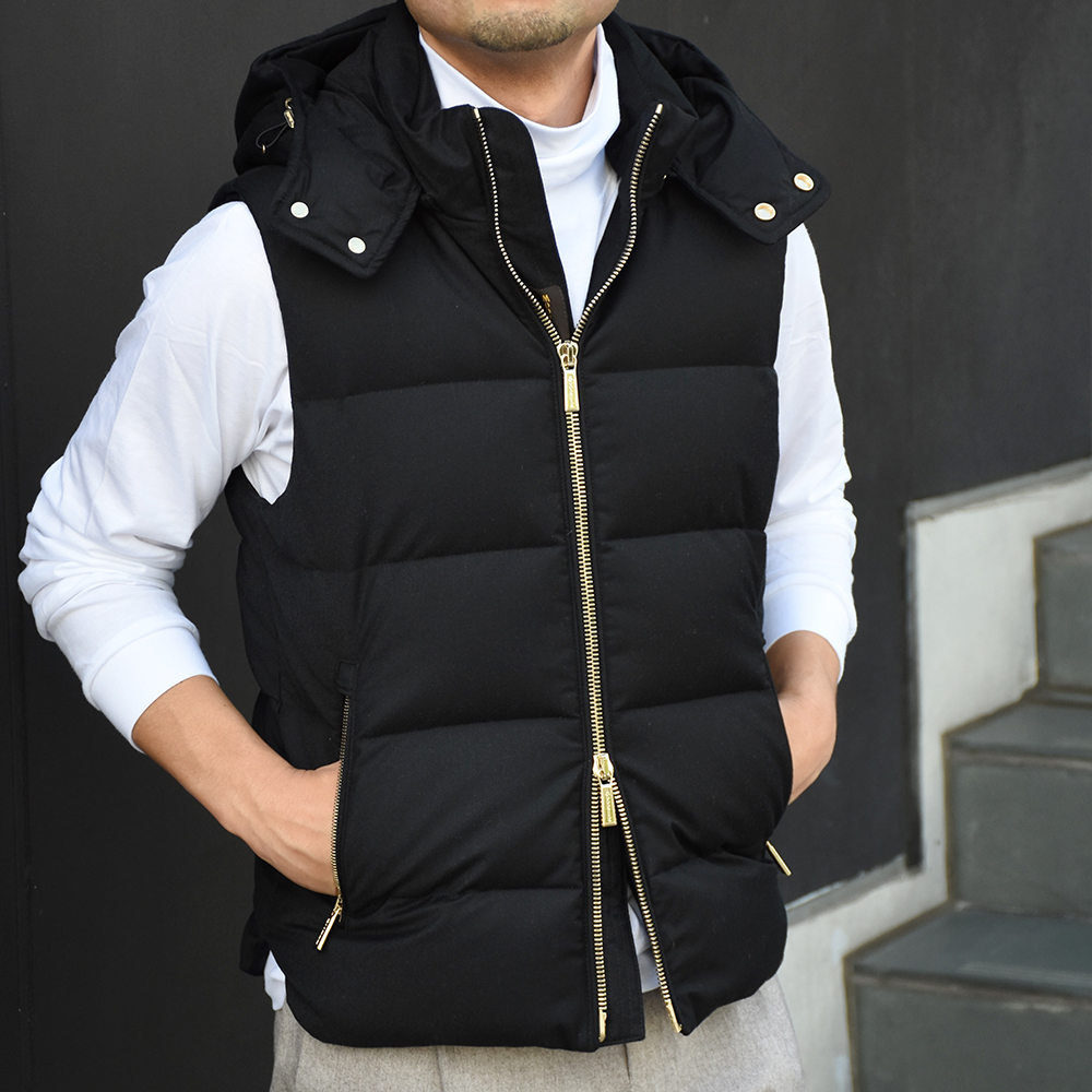 ムーレー / 【BR別注】ゴールドパーツ デタッチャブルフード ダウンベスト/FIRE-LLO/NERO