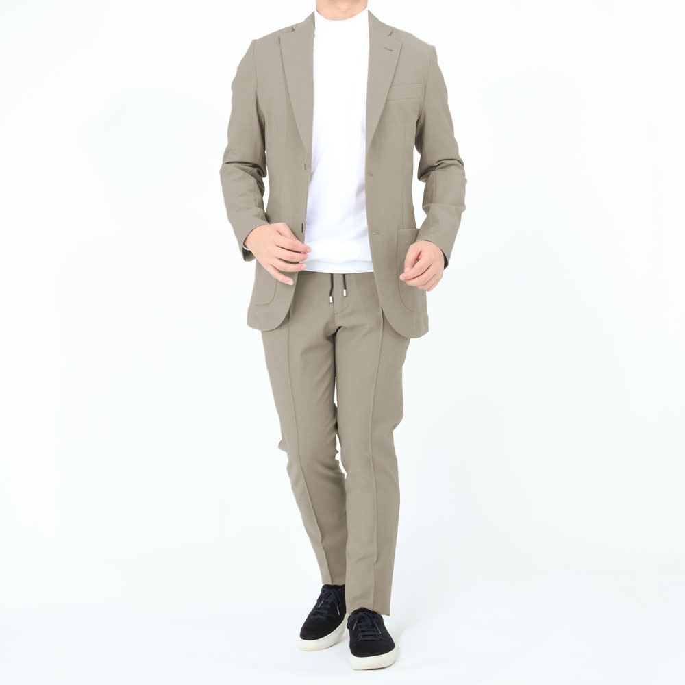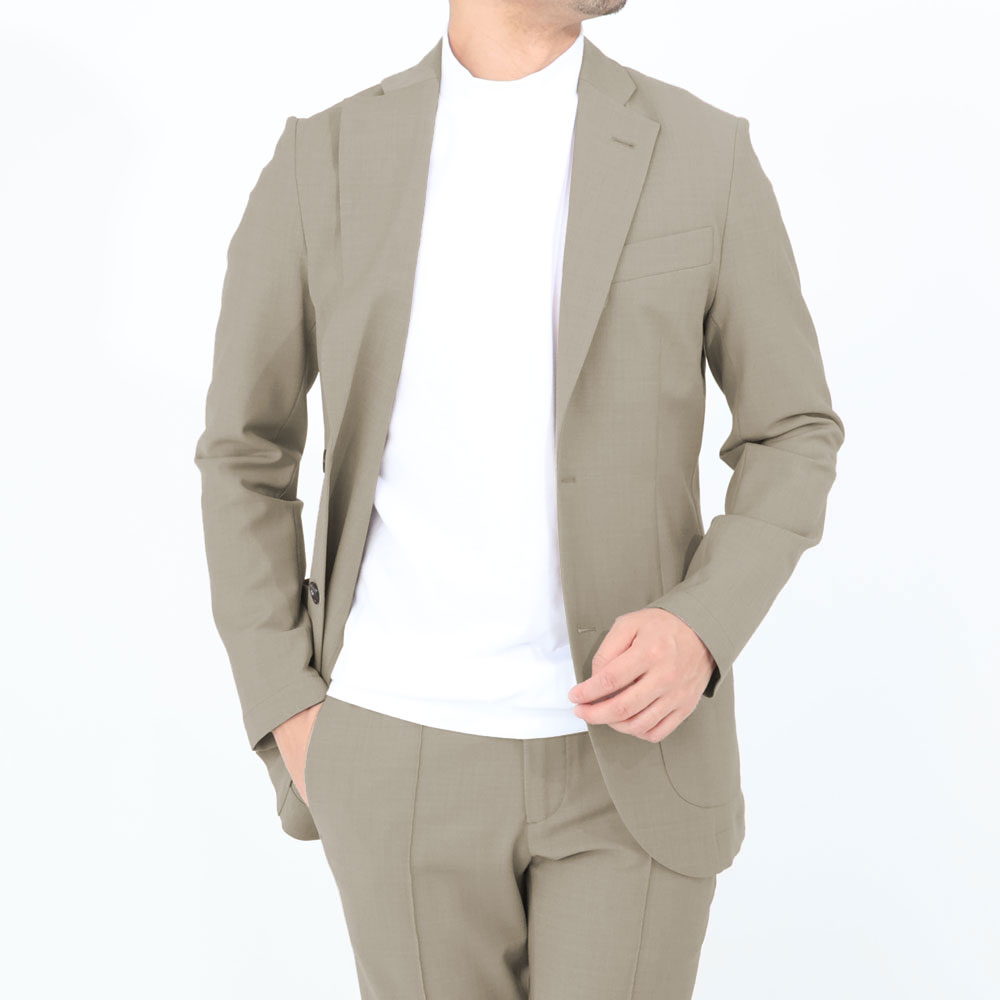 ・グレージュ/ネイビーの2色をラインナップ。同生地のトラウザーズとセットアップでどうぞ。