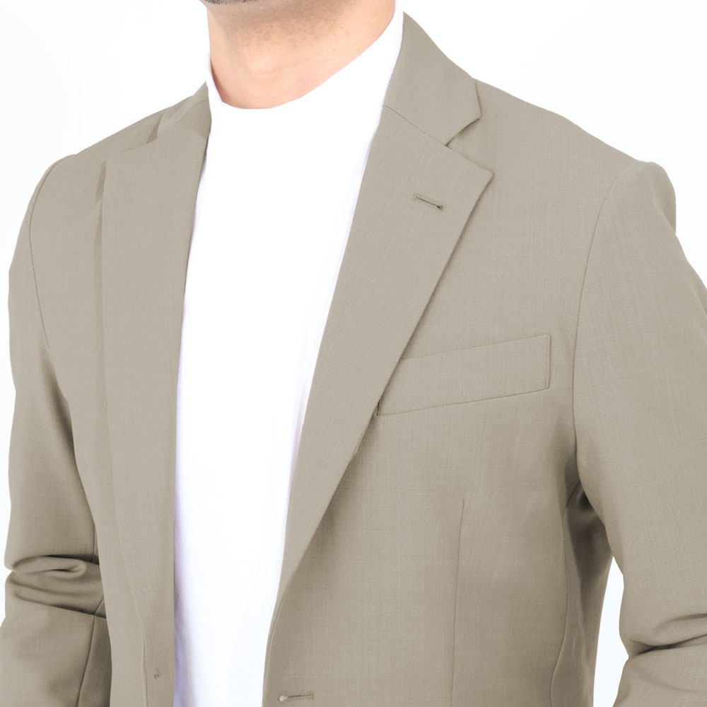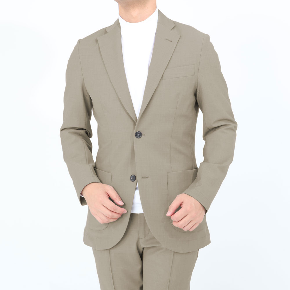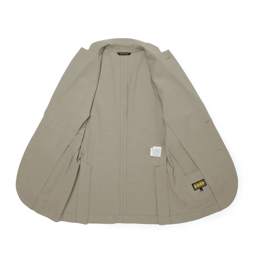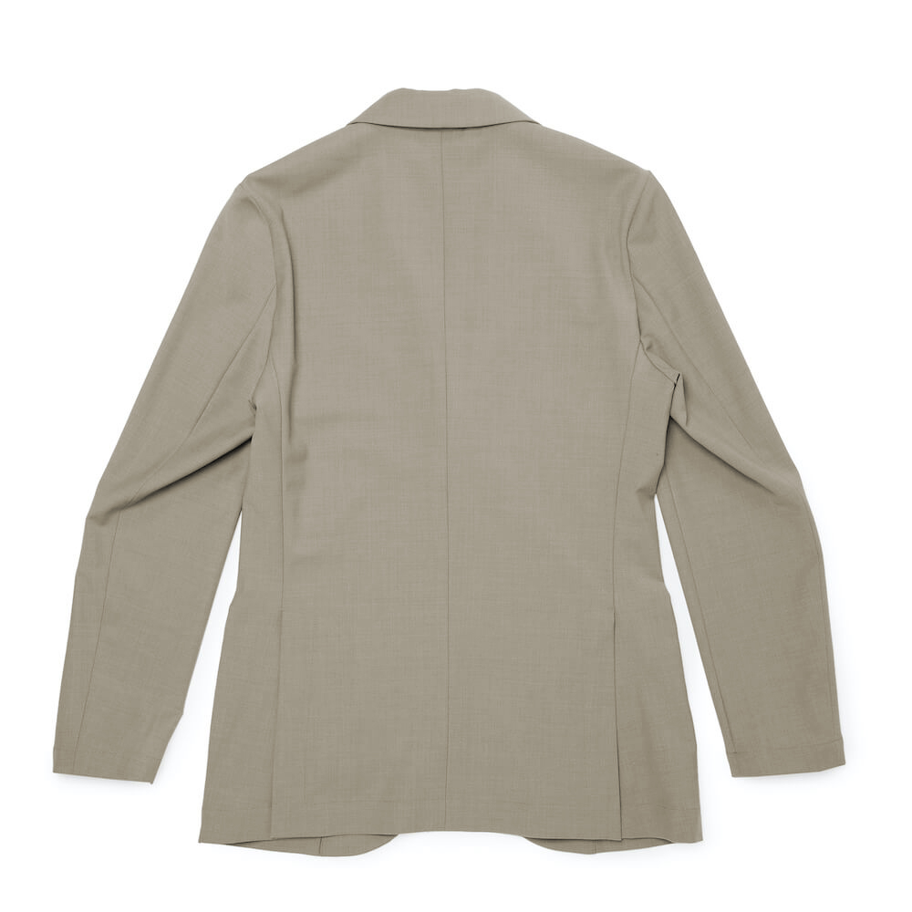 • 見返し有り(前身頃)、背裏地無し、袖裏地無し、サイドベンツ、胸箱ポケット、2パッチポケット、腰内ポケット1つ、ステッチあり筒袖