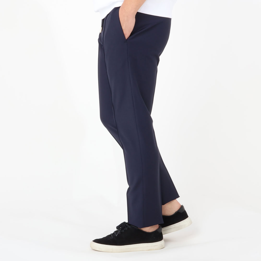 ・シャープで美しいシルエットを実現している理由はフロントにクリースをおさえるステッチが入っているから。縦のラインが強調され、視覚的な脚長効果は抜群です。