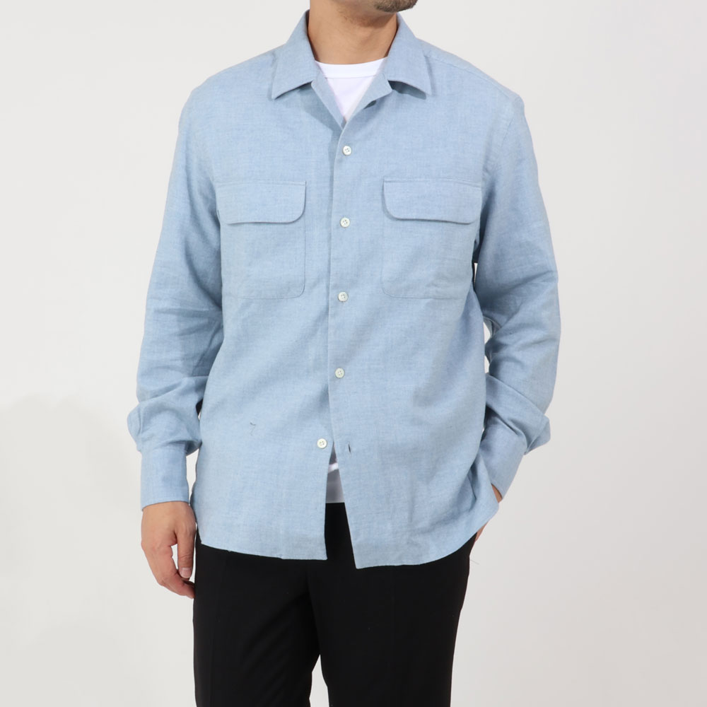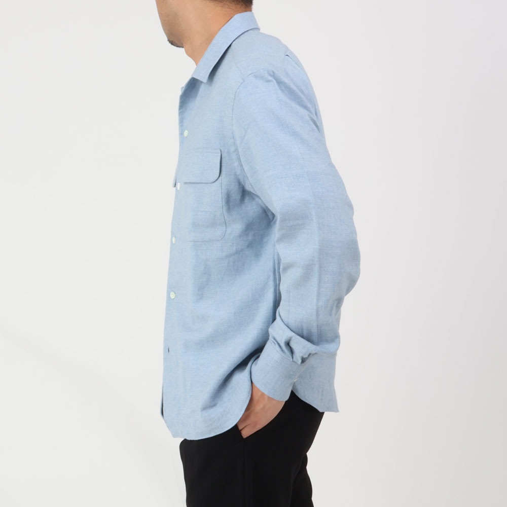 ・ベースとなったモデル"ASPEN(アスペン)"は、ワンピースのオープンカラーと二つのフラップ付き胸ポケットが特徴のほんのりミリタリー感のあるオーバーシャツです。
