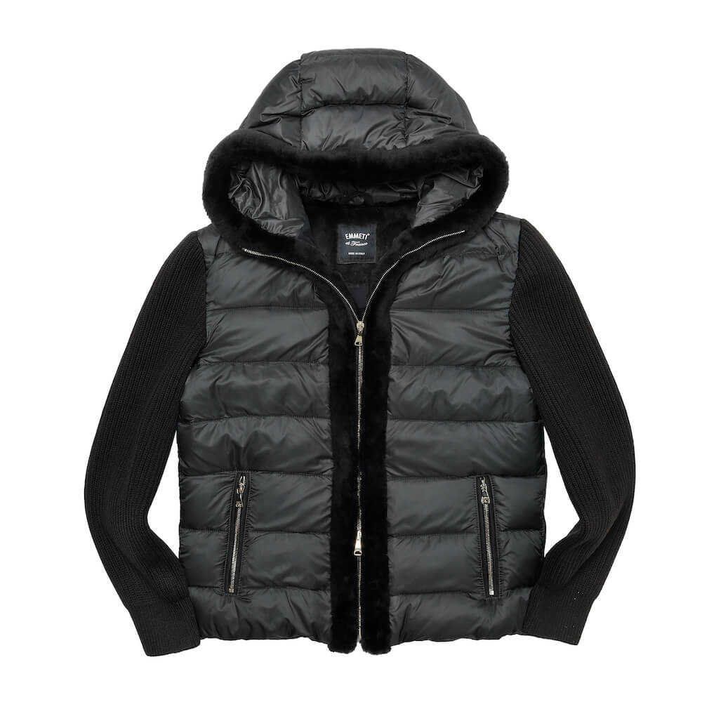 ・(なかなか伝わりづらいのですが)異素材を縫い合わせて一着の衣服に仕立てる、というのはかなりの技術が要ること。それを見事に実現したのが「EMMETI(エンメティ)」の"MOUTON DOWN(ムートンダウン)”です。