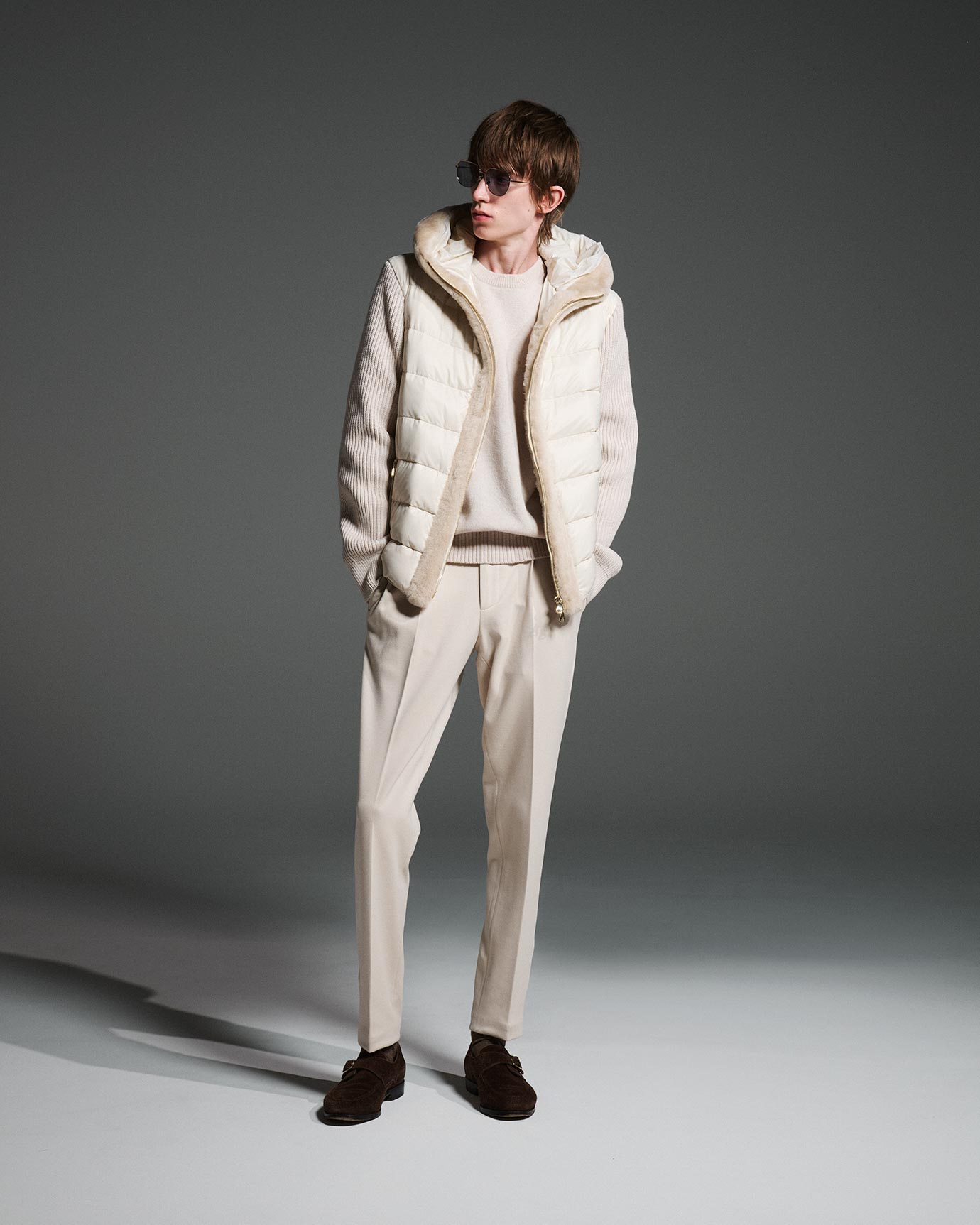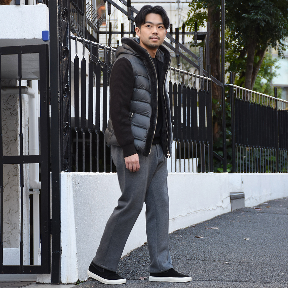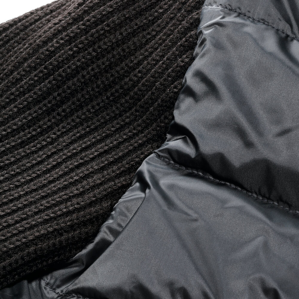 ・身頃のみがダウンなので温暖化傾向のある現代でもオーバースペックにはならず、伸縮性に富んだニットスリーブで動きやすく、ムートンによりラグジュアリーさが加えられた、というまさにハイブリッドアウター。