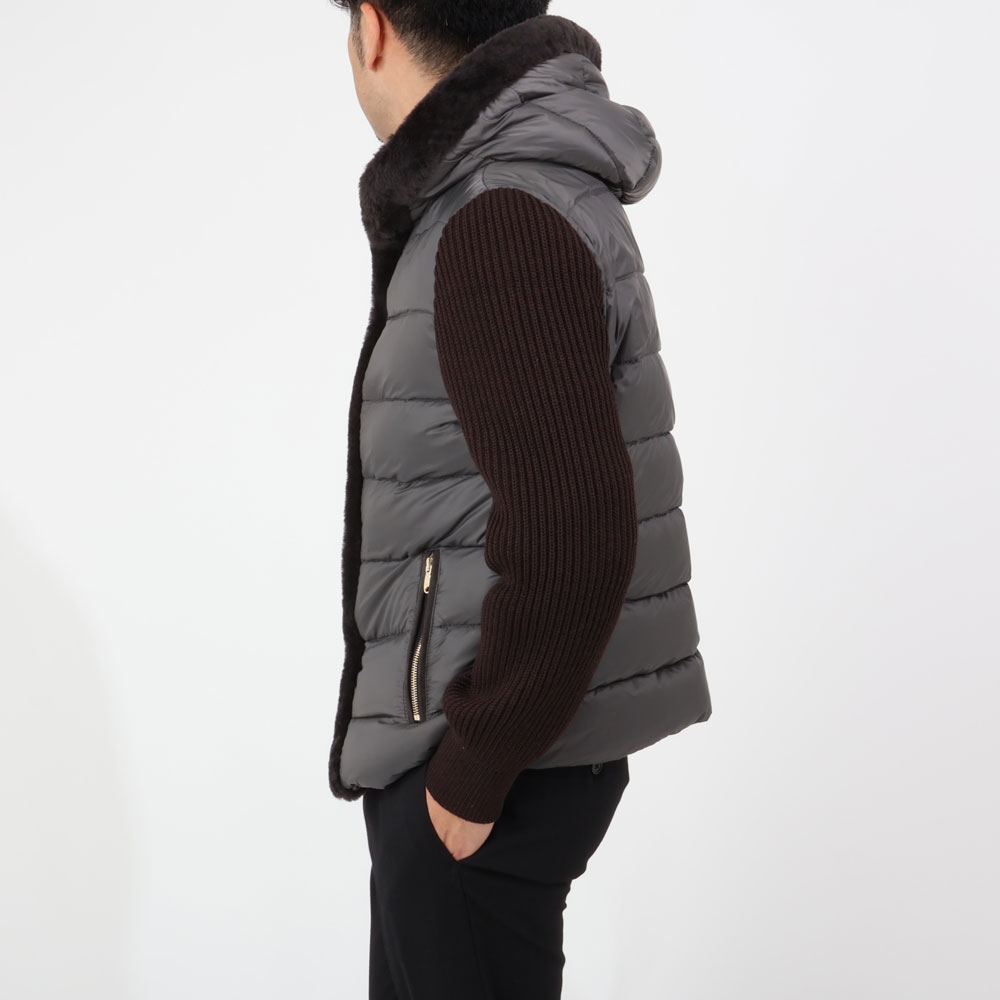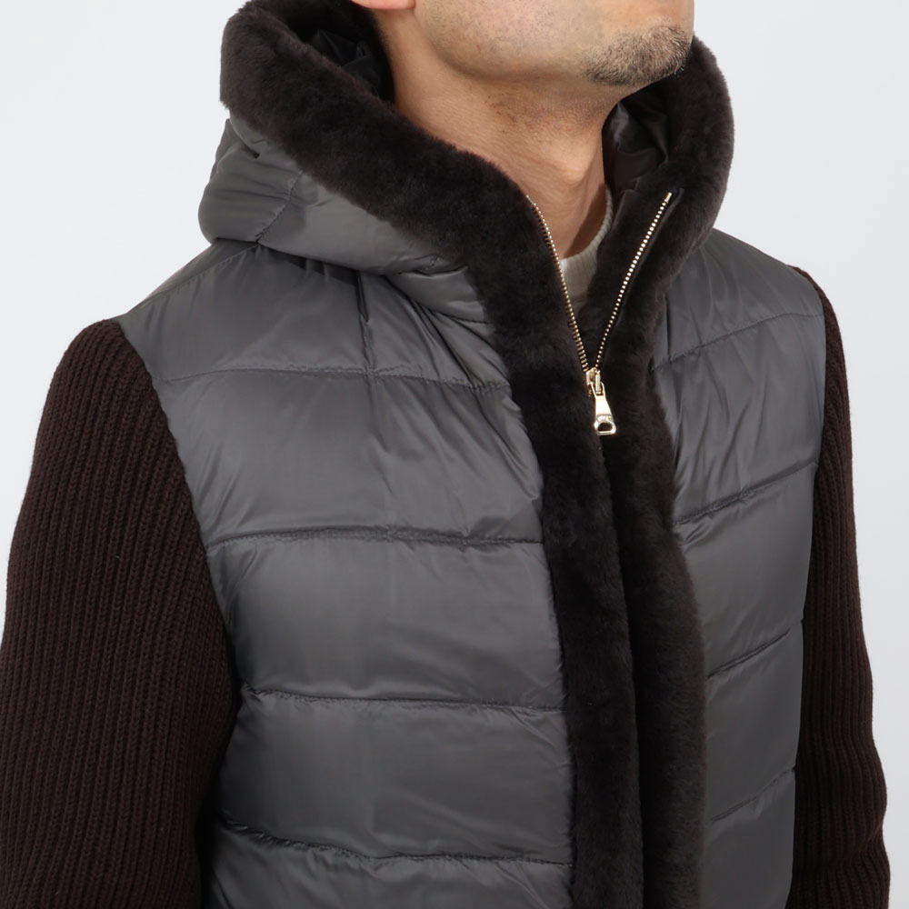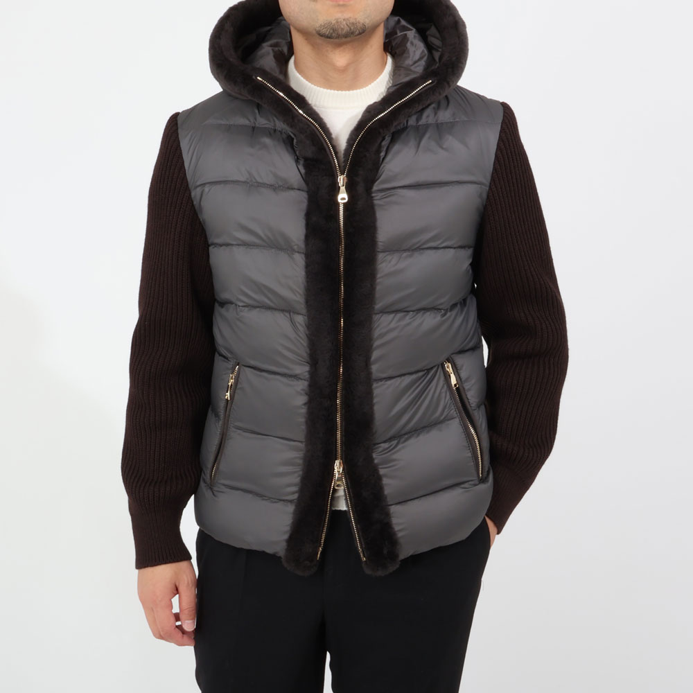 ・こちらは、身頃にダウン、フードとフロントジップ周りなどにストレートヘアのムートン、そしてスリーブにはニットを配したモデル"GART(ガート)"。