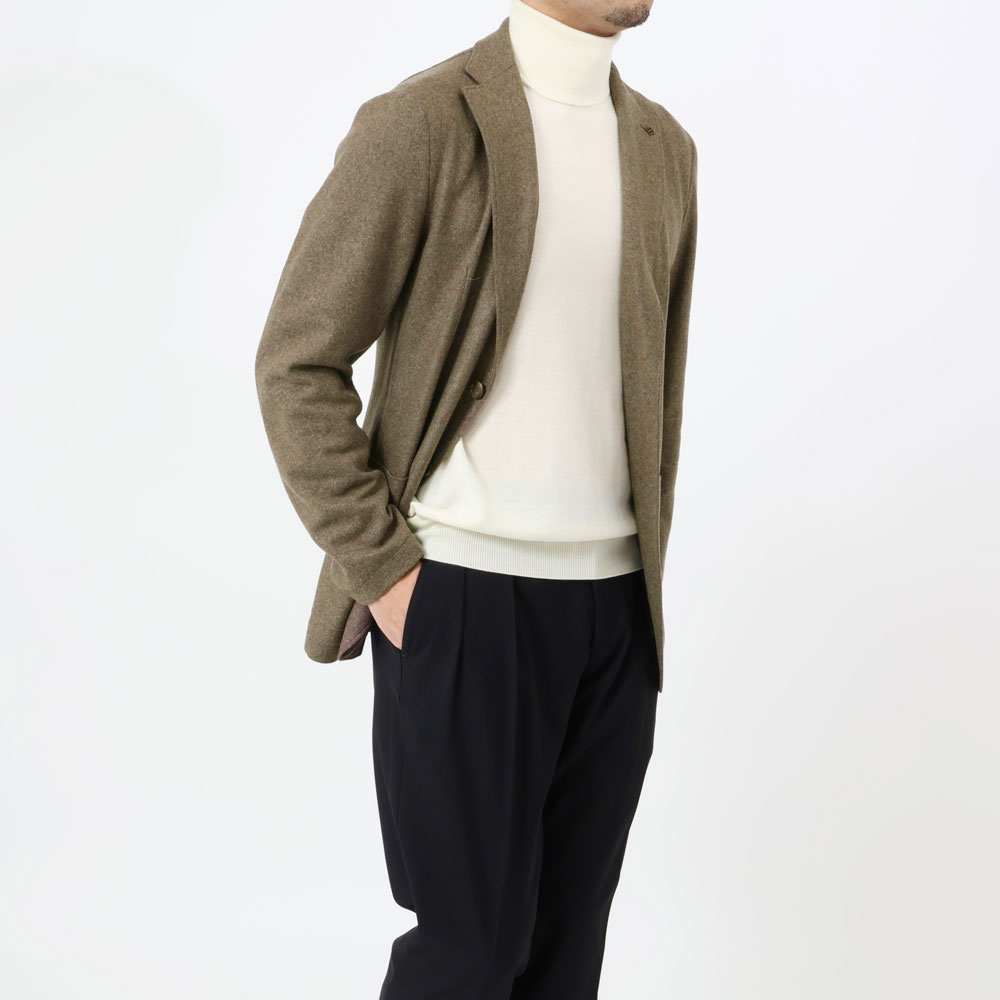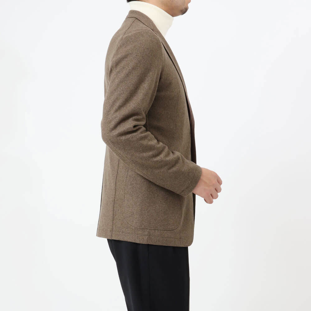 構築的な仕立てながらも力の抜けたリラックス感が絶妙。まるでカーディガンを羽織っているかのような軽さと伸縮性で“疲れ知らず”。オンにもオフにも活躍する万能な一着です。