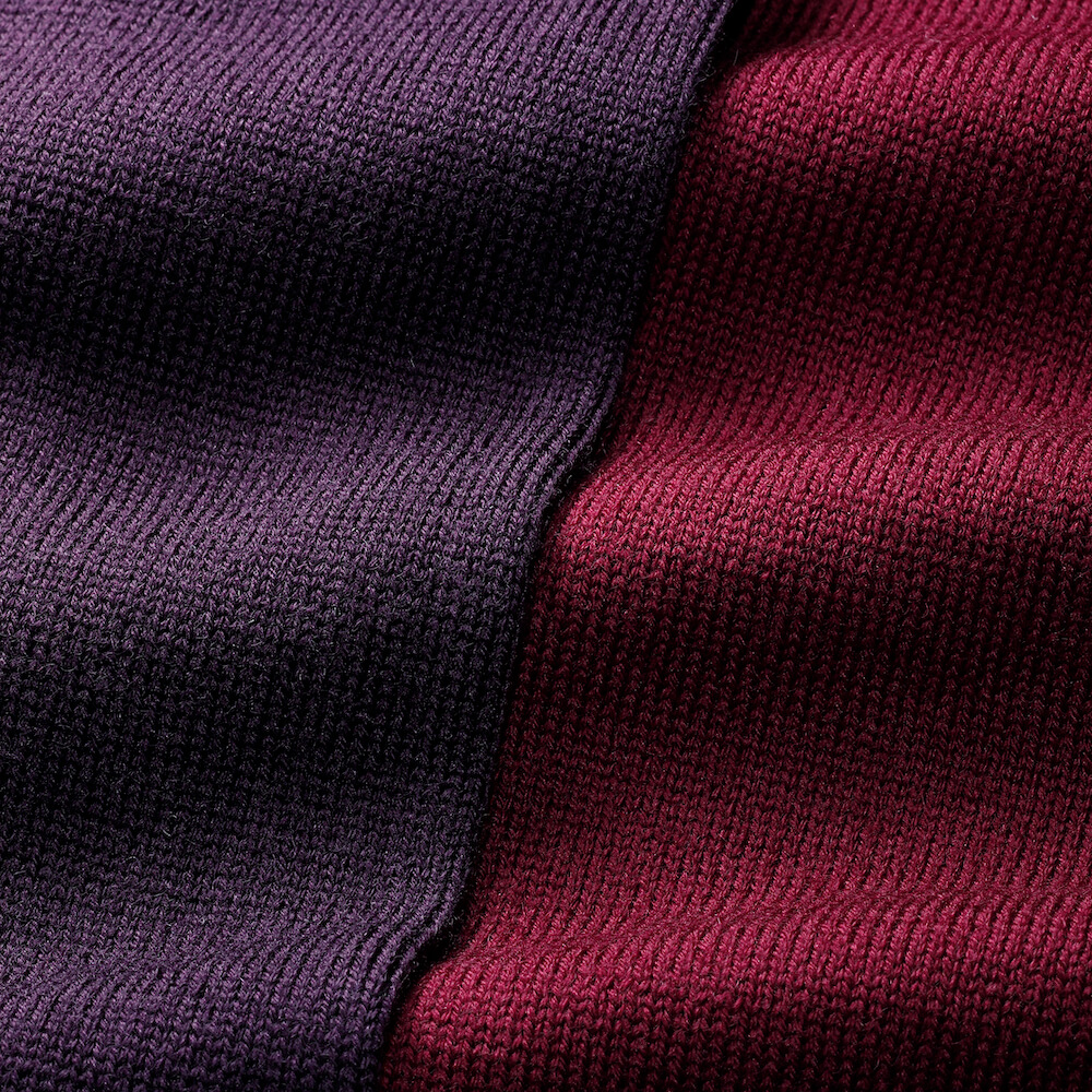 ・イタリアの名門紡績メーカーである”Zegna Baruffa”と共同開発したメリノウールの三子撚り(みこより / Triplofilo)された糸を使うことで、毛玉が出来づらく、伸縮性に富み、シワになりづらく、洗濯機のデリケースコースでケアが可能、という機能性を実現しています。