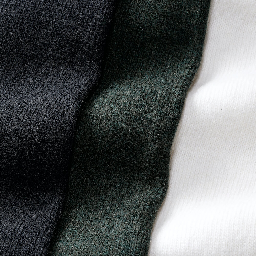 ・全3色をラインナップ。同じ編み地でクルーネック(オフホワイト/ライトグレージュ、ブラック/サックス/ネイビー)もご用意しております。