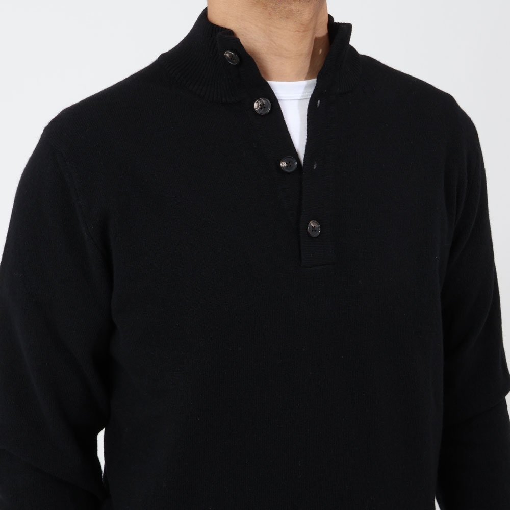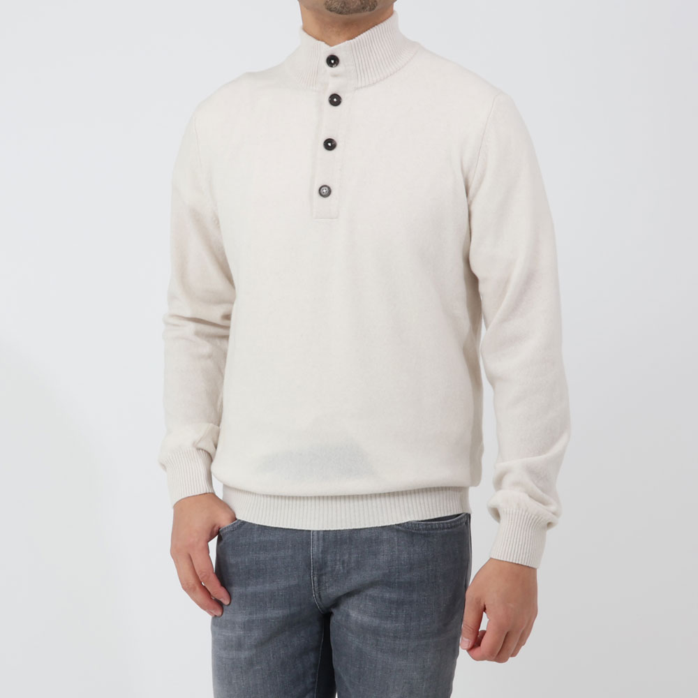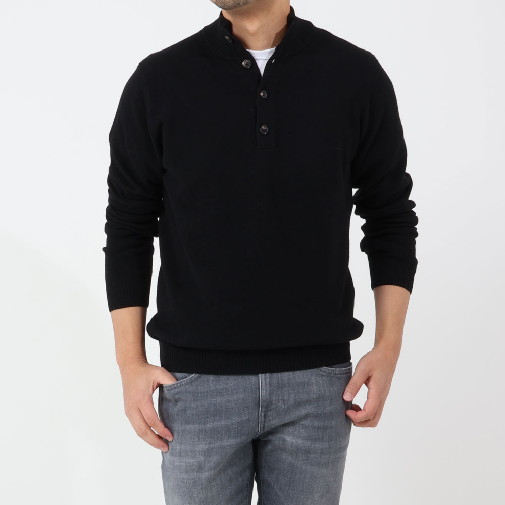 ・こちらは襟立ちの良さがこなれ感を生むボタン付きのハイネック。ボタンを開けて白Teeをチラ見せする着こなしがおすすめです。タートルネックが苦手な方にもピッタリ。