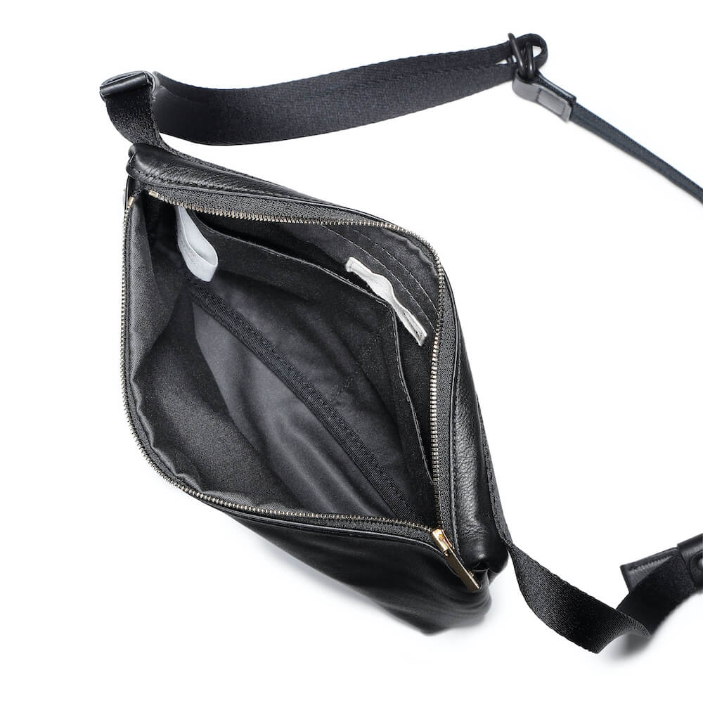 ・内装には特徴的な継ぎ目のない小分けポケットを二つ備え、薄マチでスマート。スマホ / イヤホン / サイフ / カギ / サングラスなどを入れるには十分な容量があります。そして、シリアルナンバーが入れられており特別感も得られます。