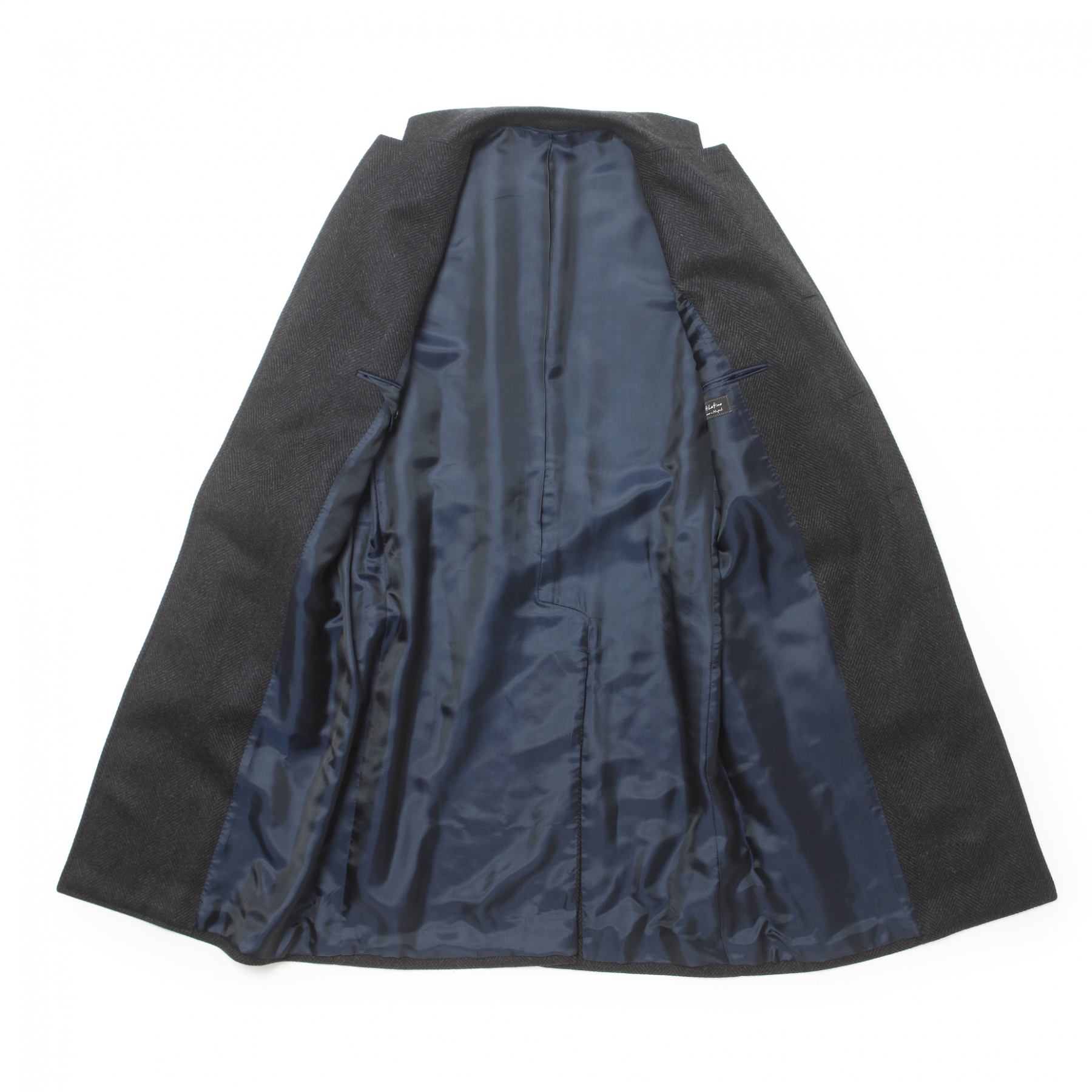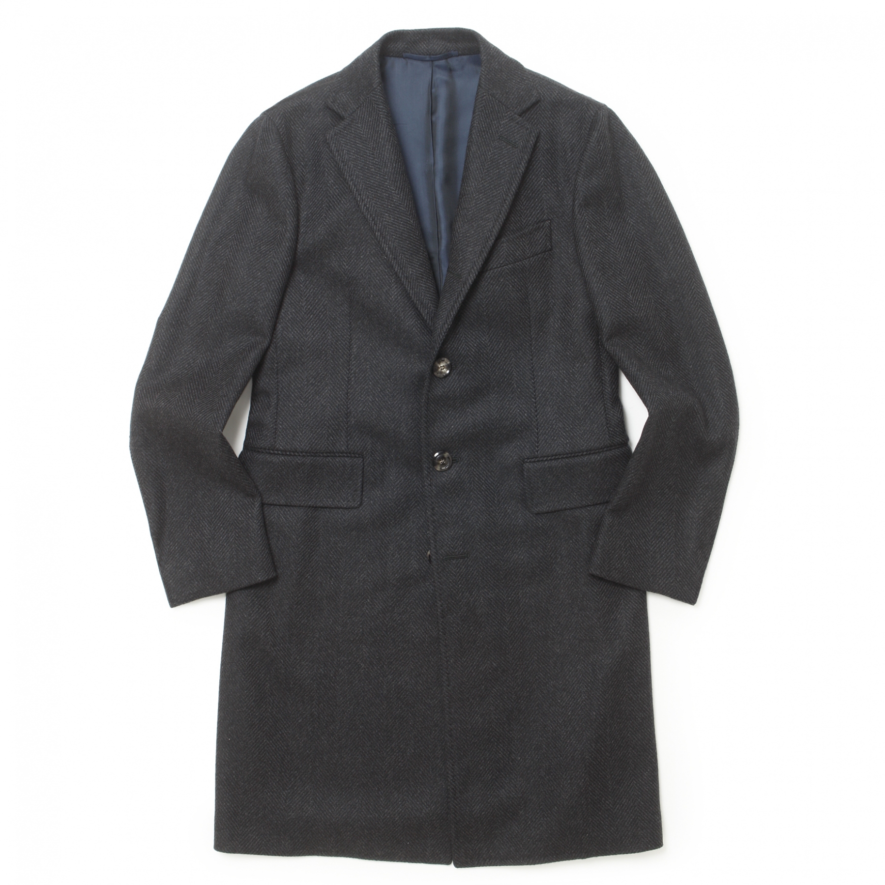 ・大柄なものの控えめに入れられたヘリンボーンが上品に映る生地で、カシミア混ということもあり柔らかみとハリコシを併せ持ちます。目付けは540グラム。2色にてご用意しました。
